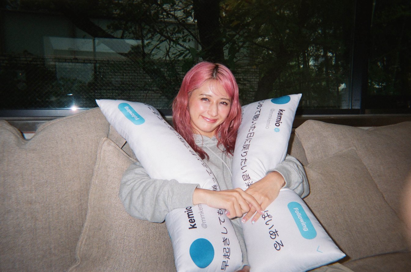 kemioさんのツイートピローはずっとソファに置いています。顔のクッションも持っていて、それに毎日勇気づけられています。顔がプリントされたTシャツを着ていているときは「私はカリスマ!」って気分になれます(笑)。私もkemio storeみたいな自分らしいショップが作りたい!って思って「しなこストア」を始めました。名前、ちょっと真似しました(笑)。