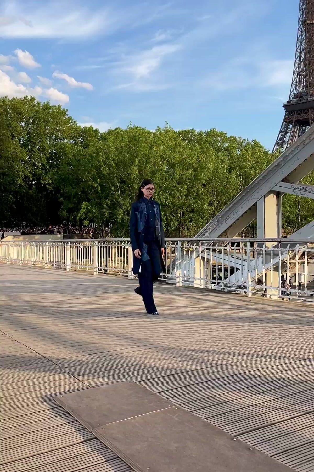 「ショーの音楽が、エッフェル塔を臨む景色とマッチしていました」と話すのは、俳優・モデル・DJで音楽活動でも注目を浴びる大平修蔵。ショーミュージックを手掛けていたのは小山田圭吾が率いるコーネリアスだ。小山田はシティポップから派生した「渋谷系」の代表的人物であり、彼のサウンドはショーのテーマに現代的な解釈を加えていた。