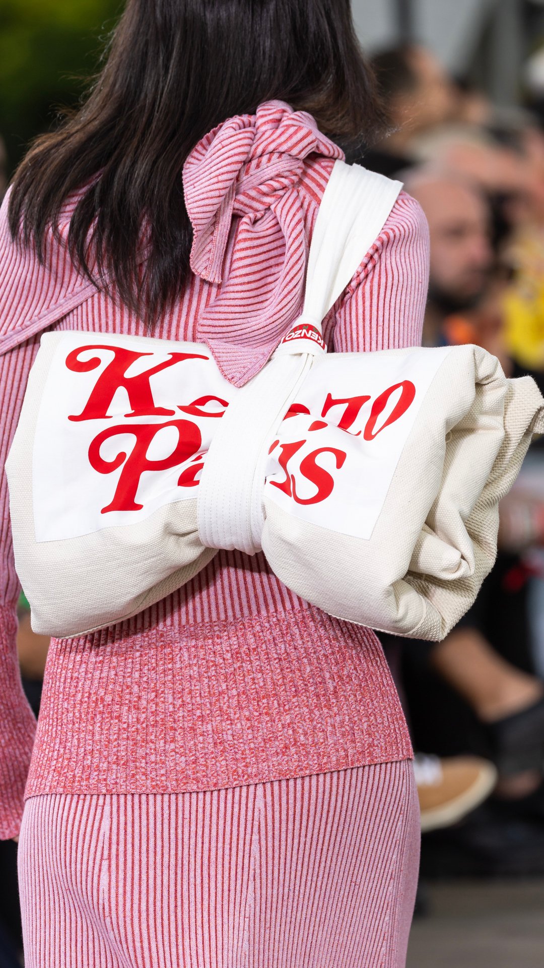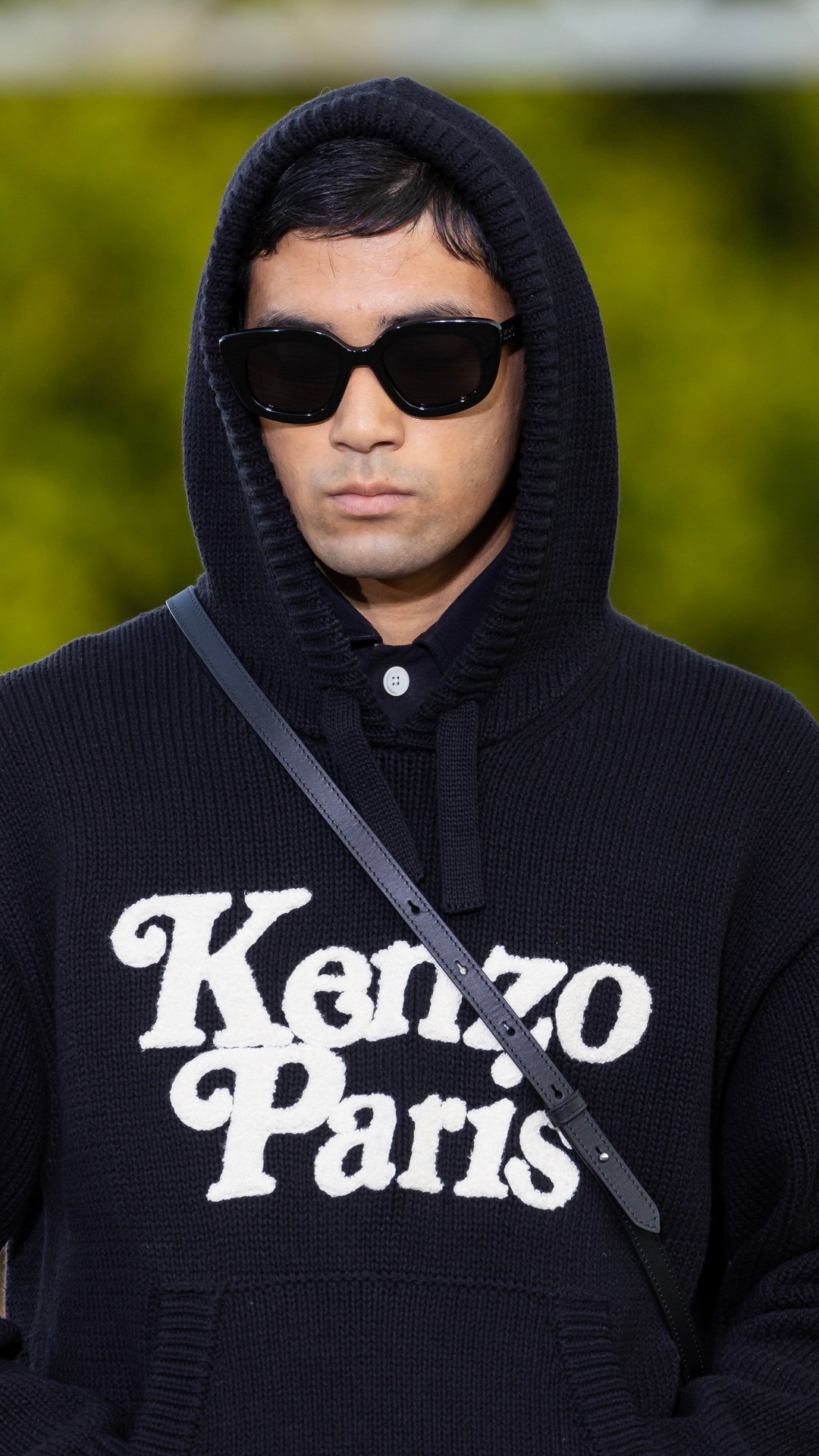 今回の最大のサプライズはVerdyとのコラボレーションだ。ブランドが軌道に乗るまでコラボは控えていたというNigoだが、4シーズン目のコレクションにして若きクリエイターに白羽の矢を立てた。ロゴ全盛期の反動を受け、控えめで高級なスタイルを指す「クワイエット ラグジュアリー」が広まりつつある中、Verdyがスワッシュ・フォントで解釈したグラフィックロゴ「KENZO by Verdy」が新鮮に映る。決して時代遅れにならないのは、Nigoがストリートスタイルのゴッドファーザーであり、何が"本物"かを知る男だからだろう。