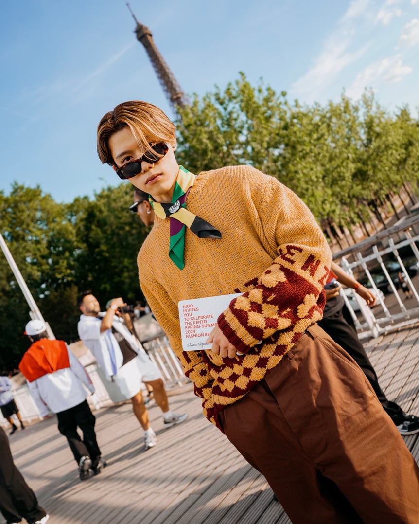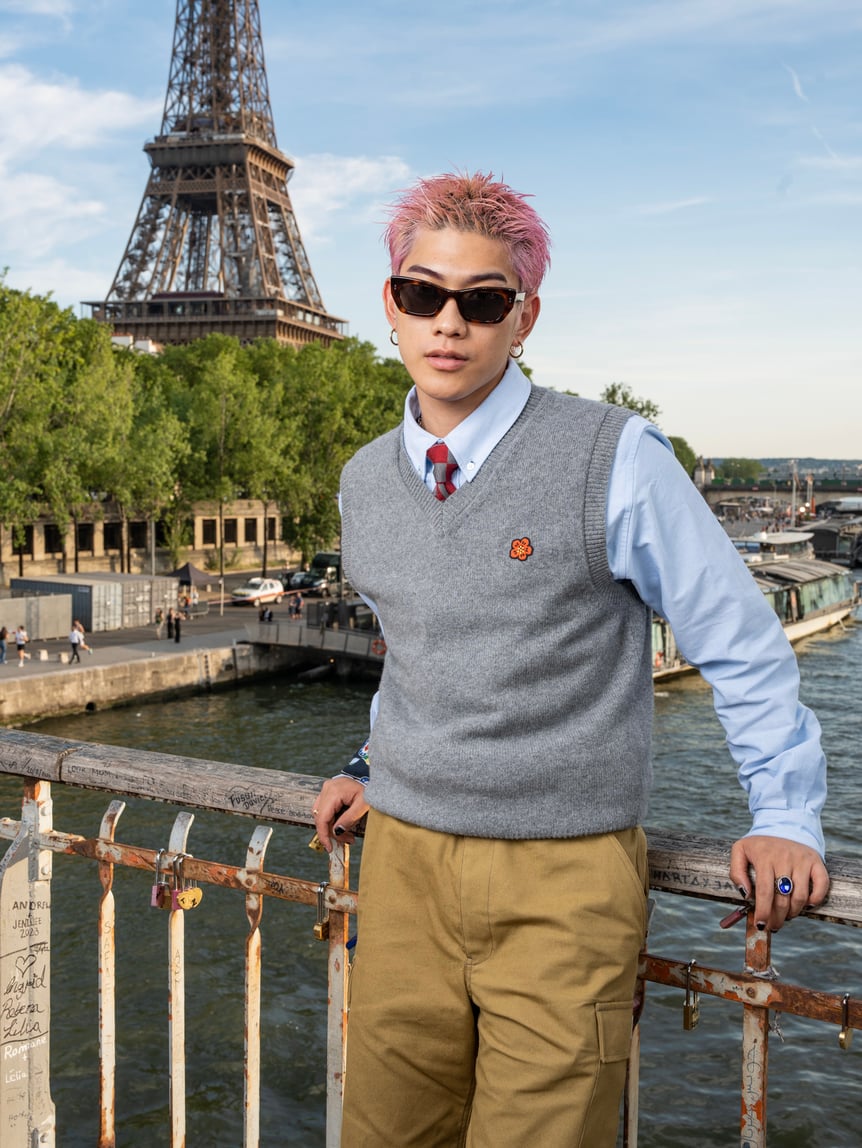6月23日、風薫る夕刻のパリ。Nigoによる「ケンゾー(KENZO)」4度目のランウェイショーが、セーヌ川にかかる橋「ドゥビリ歩道(Passerelle Debilly)」で行われた。片側には、かつての「東京通り」にちなんで名付けられた美術館「パレ・ド・トーキョー(Palais de Tokyo)」があり、もう片側には、言わずとしれたパリのシンボル「エッフェル塔(La tour Eiffel)」がそびえ立つ。東京とパリをつなぐメタファーとも取れるこの場所でのショーのテーマは「シティポップ」。日本から世界に浸透しているカルチャーにスポットが当てられ、また日本のグラフィックデザイナーVerdyとコラボレーションしたコレクションが、セレブリティを含む多くのゲストを魅了した。