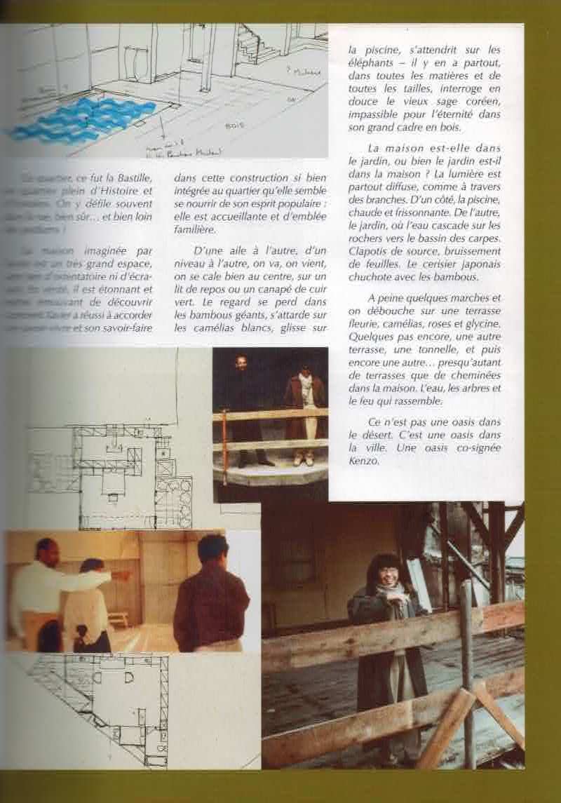 高田賢三の邸宅を紹介する冊子の1ページ。設計図や、グザヴィエの姿も。 Image by Aguttes