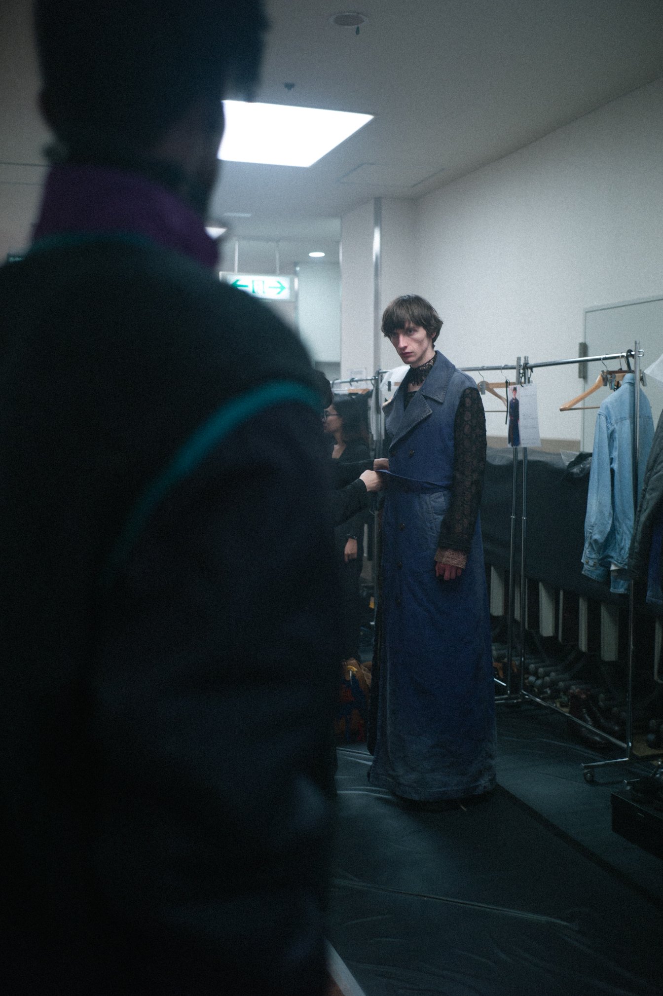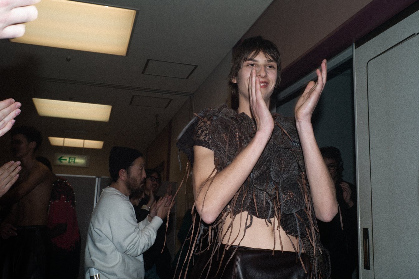 無事ショーが終わりフィナーレを終えた客席では拍手喝采が起き、バックステージでも拍手が起こっていた。スリリングであり、他で体験することのないランウェイだったからこそ、バックステージに返ってきたモデルたちには安堵の表情が見える。