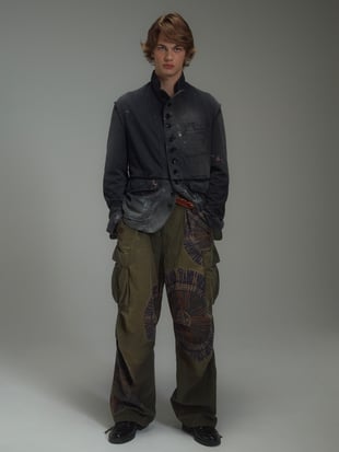 よく見ると(よく見なくても?)ツッコミどころが満載。当初6個つける予定だったボタンは時間の都合で4つに数を減らし、星のワッペンは途中までは縫ったものの最終的に間に合わず、スタッフさんによるミシン仕上げに変わっています。中央のグリーンは元々予定にはありませんでしたが、ブランドディレクターのKokiさんにお願いしたところ、最後に追加してくれました。