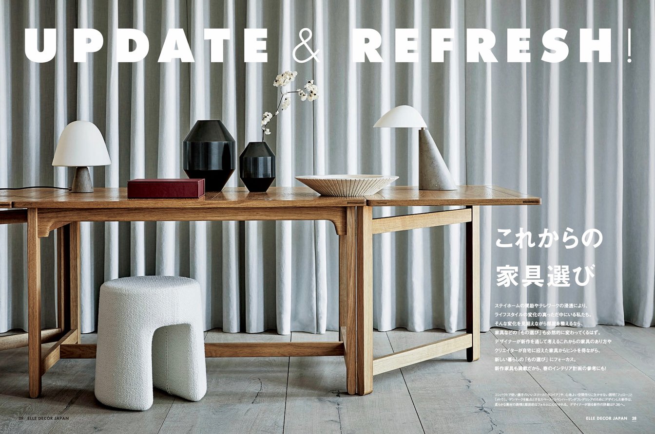 エル・デコ 2021年4月号『これからの家具選び』生活に大きな変化をもたらしたコロナ時代のモノ選びの基準について特集している。