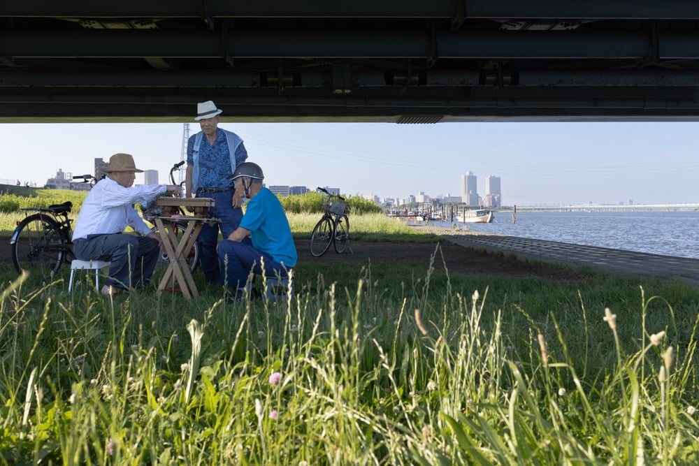 河川敷の橋の下、ご老人たちが将棋を指していた。