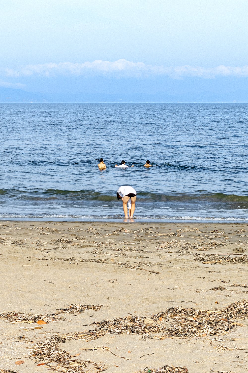 少し向こうで、学生たちが服を脱いで海に飛び込んでいった。