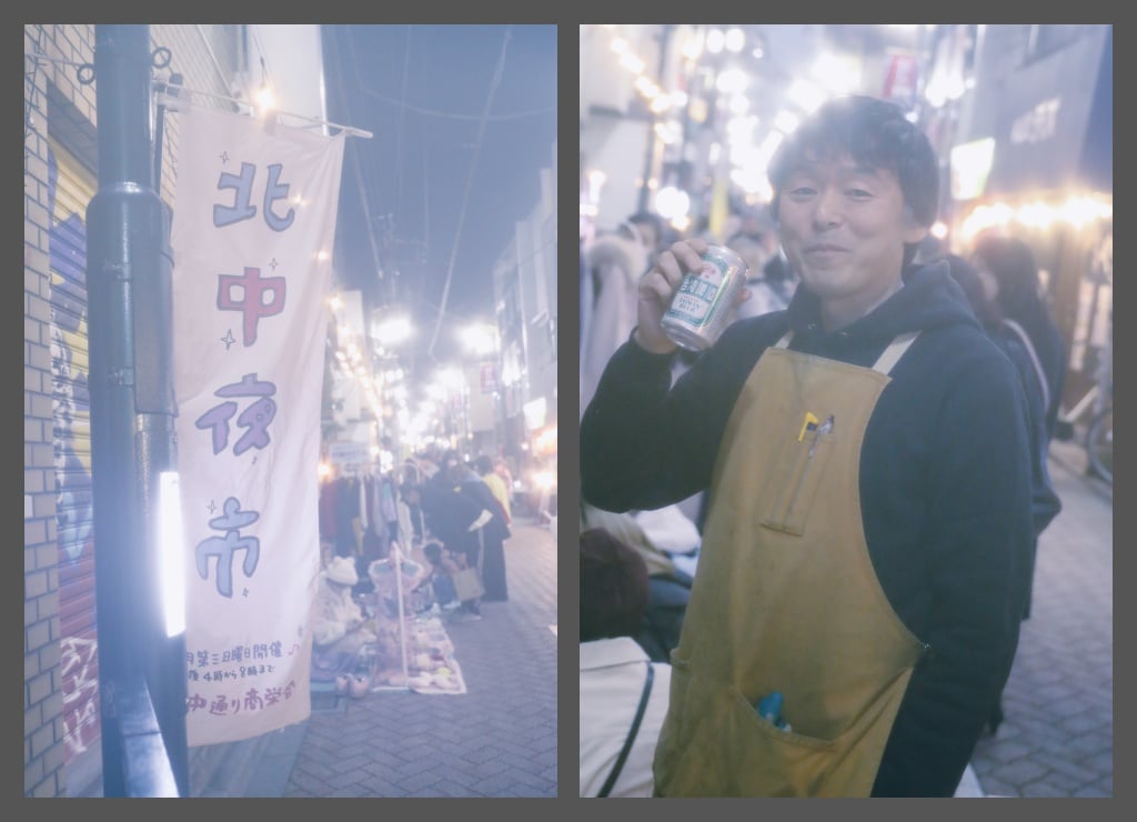 「すごいねー、なんだか違う街に来たみたい」とすれ違い様に聞こえたのは、高円寺駅の北口に位置する商店街通り、北中通りだ。この通りでは、毎月第三日曜日の16時から「北中夜市」と称する路上フリーマーケットが継続的に開催されている。大きくはない商店街通りだが、手作りのアクセサリーや古着、古物、ローカルフードなどを販売する40店舗が軒を連ね、大変な賑わいを見せている。特筆すべきは、商店街でのフリマであるにもかかわらず、出店者・来場者ともにファッショナブルな若年層が多いこと。また、出店枠を募れば若者から応募が殺到し、すぐ枠が埋まってしまうほど人気を集めている。