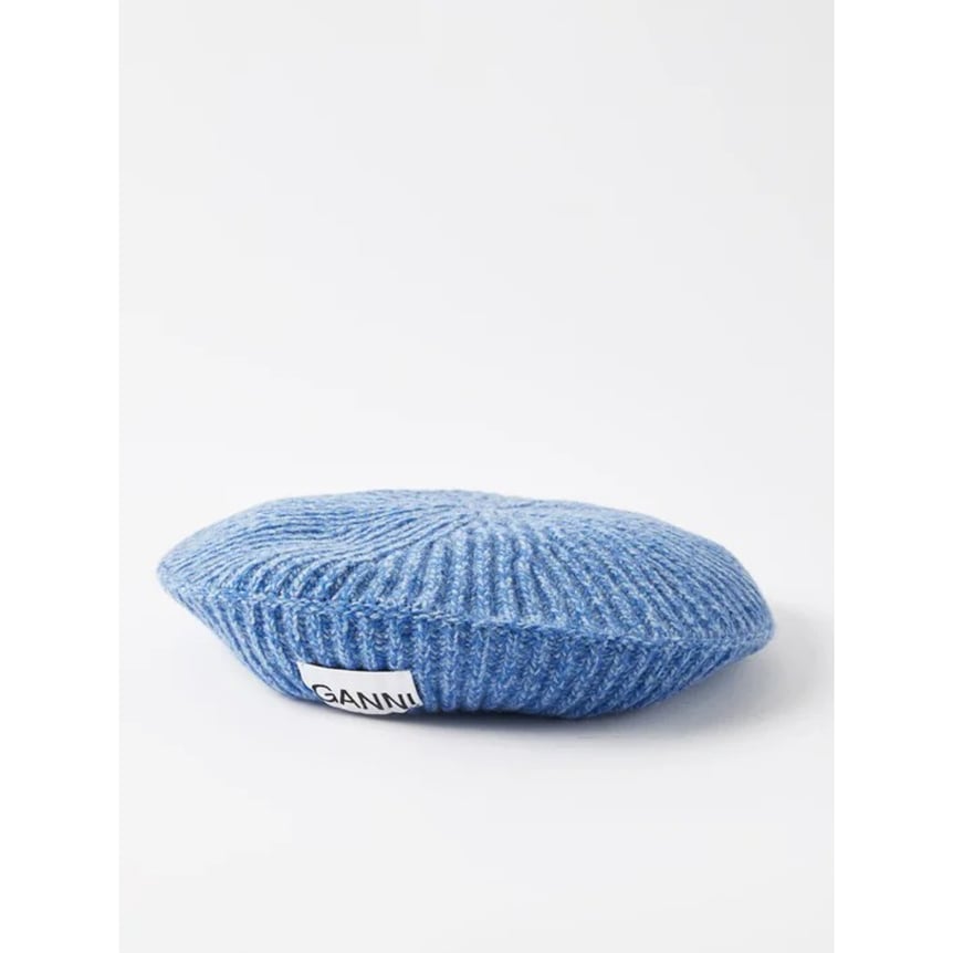 太めのリブニットを使用したベレー型の帽子は「ガニー(GANNI)」のもの。複数のカラーを撚り合わせているので、ブルーベースだけど温かみを感じるカラーです。ニット帽をかぶるように、ラフに合わせて。