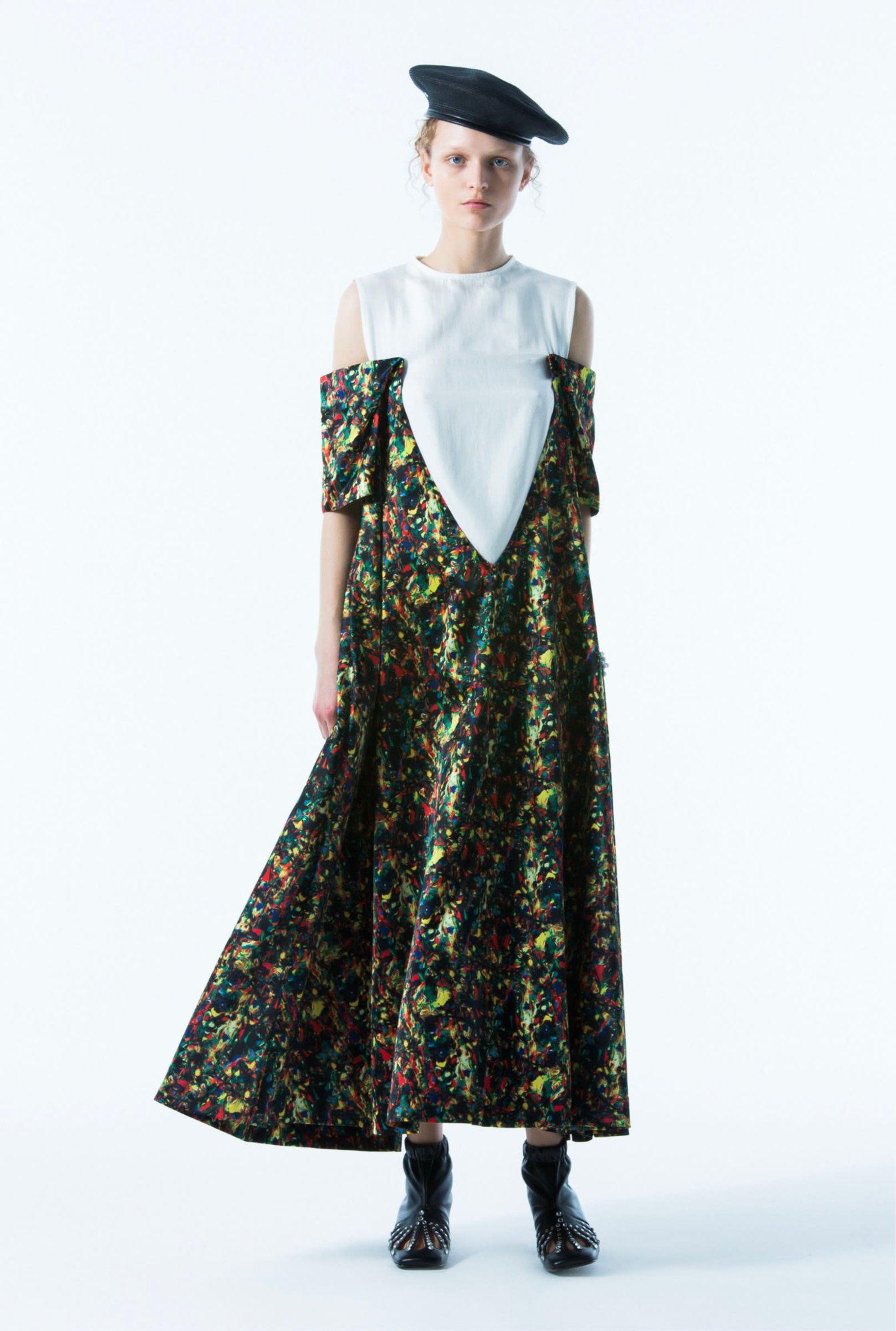 朝の連続テレビ小説「半分、青い。」でヒロインを務めた女優の永野芽郁さん。着用しているドレスはデザイナー古田泰子が手掛ける「トーガ プルラ(TOGA PULLA)」の2019年春夏コレクションで、画像のアイテムとは色違いのブラックのものでした。2018年度「第36回毎日ファッション大賞」の大賞に選ばれている注目のブランドです。