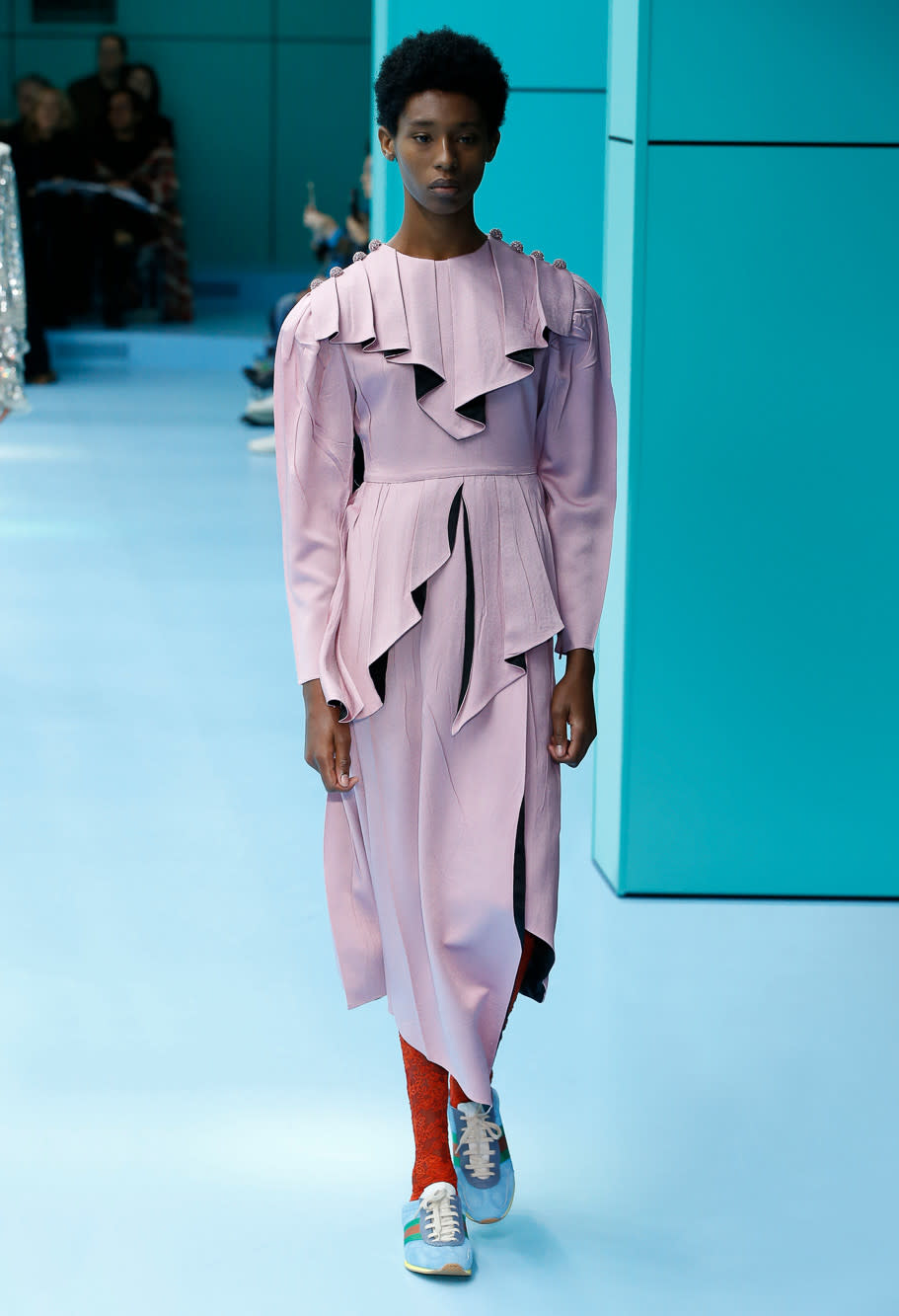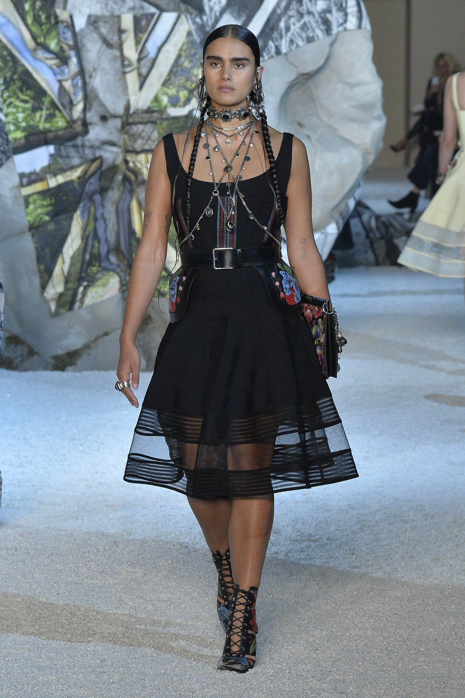 後半戦は「アレキサンダー・マックイーン(Alexander McQueen)」の2019年春夏ウィメンズコレクションのドレスにお色直し。