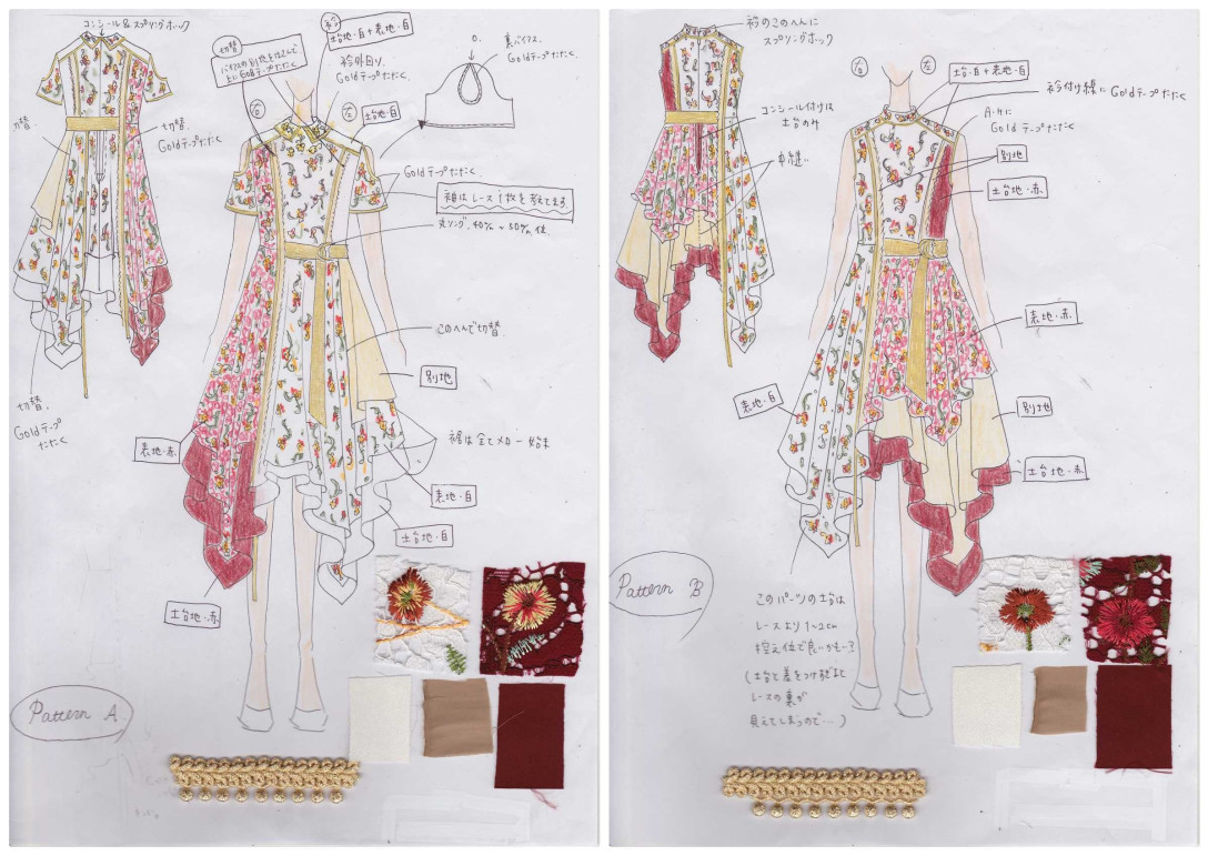 卒業を発表したHKT48の指原莉乃さんにとって最後の紅白歌合戦のステージとなった今回は、BNK48との共演が実現。32着、16パターンのデザインは2人1組でシンメトリーになる仕様になっているとのこと。AKBグループの様々な衣装を手掛けているオサレカンパニーによるオリジナル衣装で、茅野しのぶさんがデザインしました。