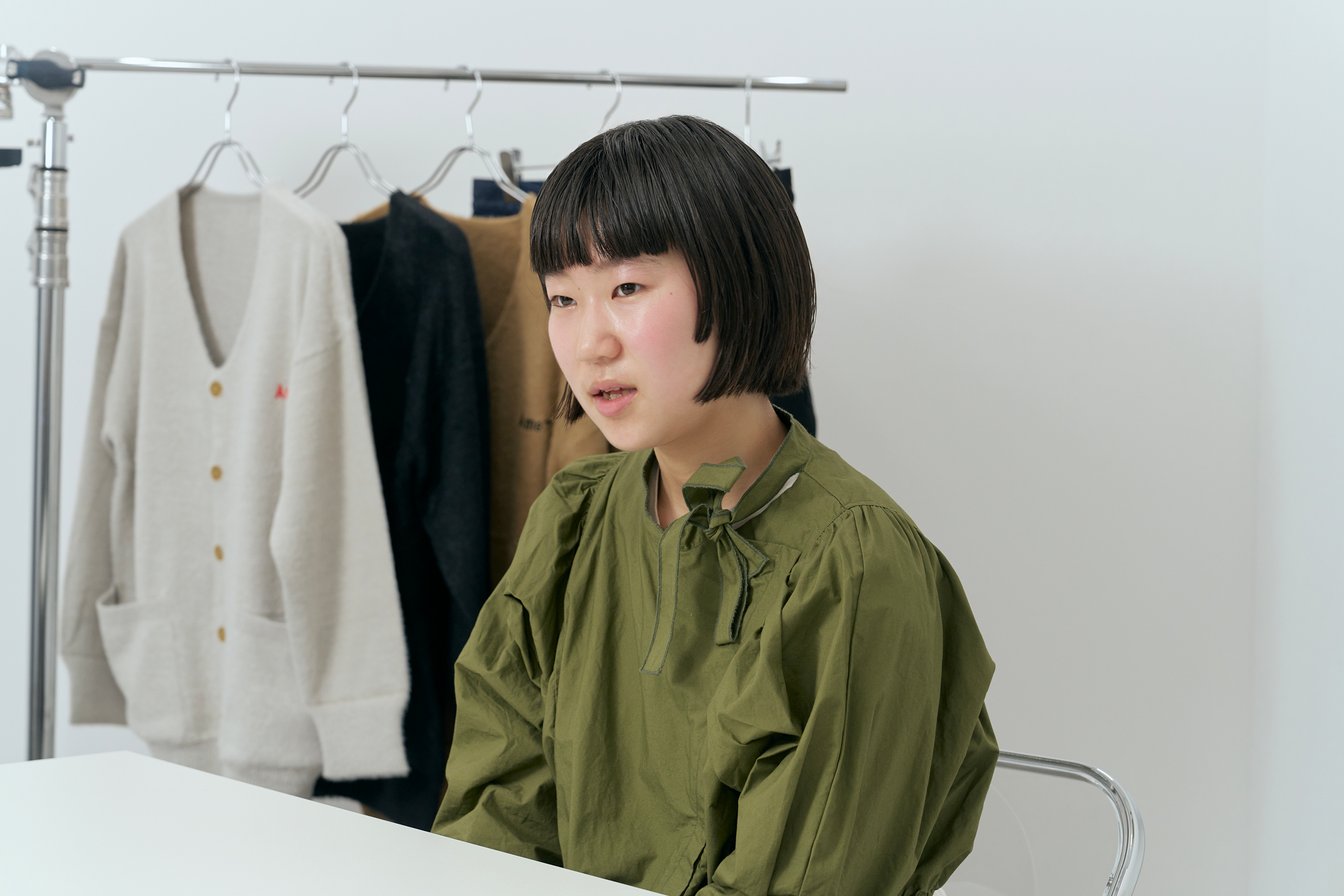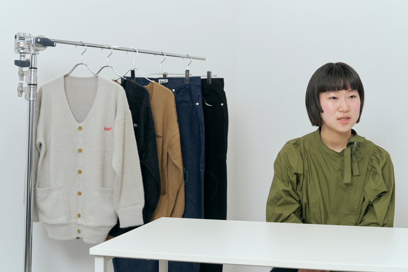 アメでは、長く大切に着続けてもらうことを一番に考えて、ものづくりを行っています。ただ服を作るだけではなく、日本の産地や工場の方の手間や思いといった背景やストーリーを深く知った上で、人々に伝えられるデザイナーになりたいです。また服を作るだけでなく、完成した服が売られていく過程や、服になる前の原料からデザインしていくということも、すごく面白いなと思っています。