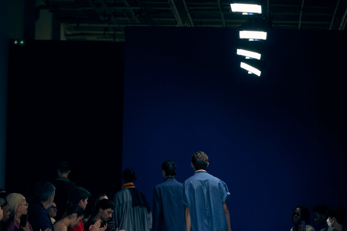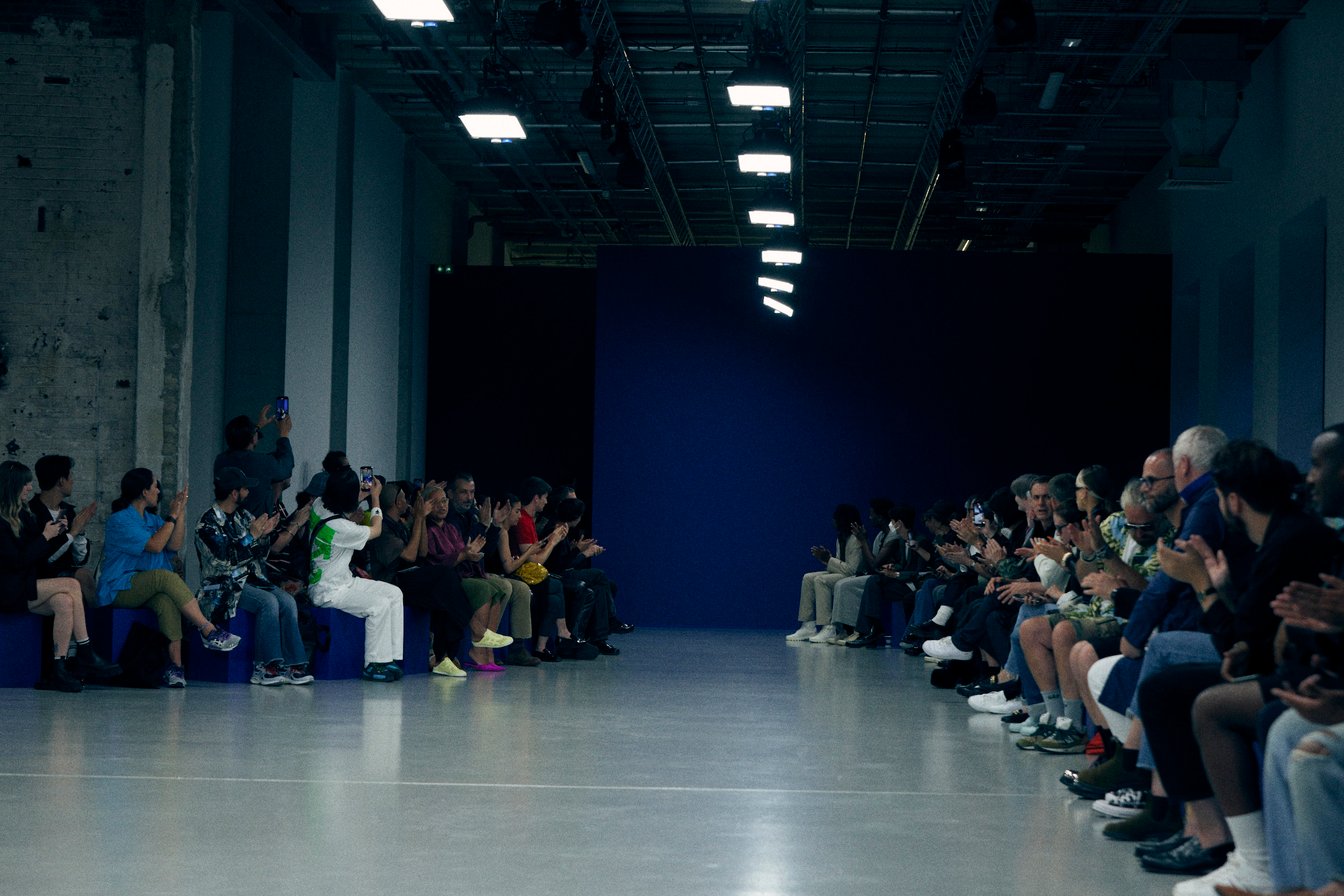 そして迎えたのが、今シーズンのパリ・メンズファッションウィーク。公式スケジュール5日目の6月25日、パリ16区の現代美術館パレ・ド・トーキョー内のフロアをブランドを象徴する色であるブルーに染め、カラーのランウェイショーが行われた。無機質な空間に招待客が続々と来場し、熱気と期待感が徐々に高まっていく。