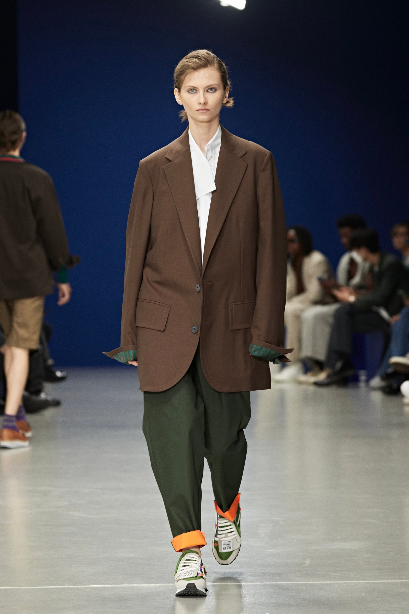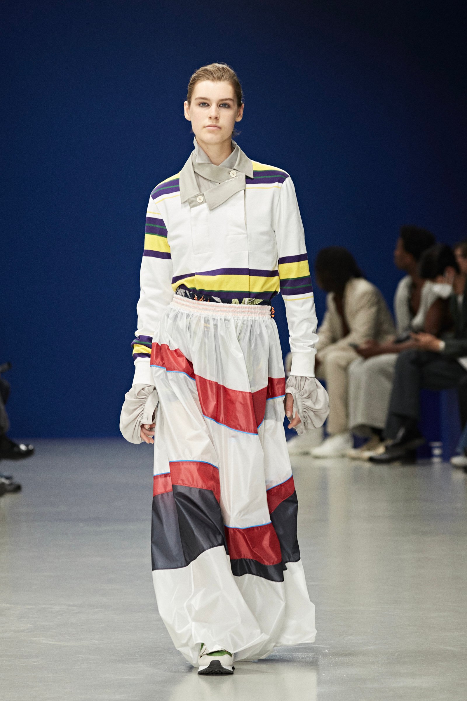 ジャケットスタイルやスポーツウェアなど、コレクションのベースはオーセンティック。しかし片側だけが壊れていたり、中心がずれていたりと複雑な仕掛けが盛り込まれ、遊びを感じさせる。それらを多様なモデルが着用してパリのランウェイを歩いた時、カラーの進化と強さを印象付けた。