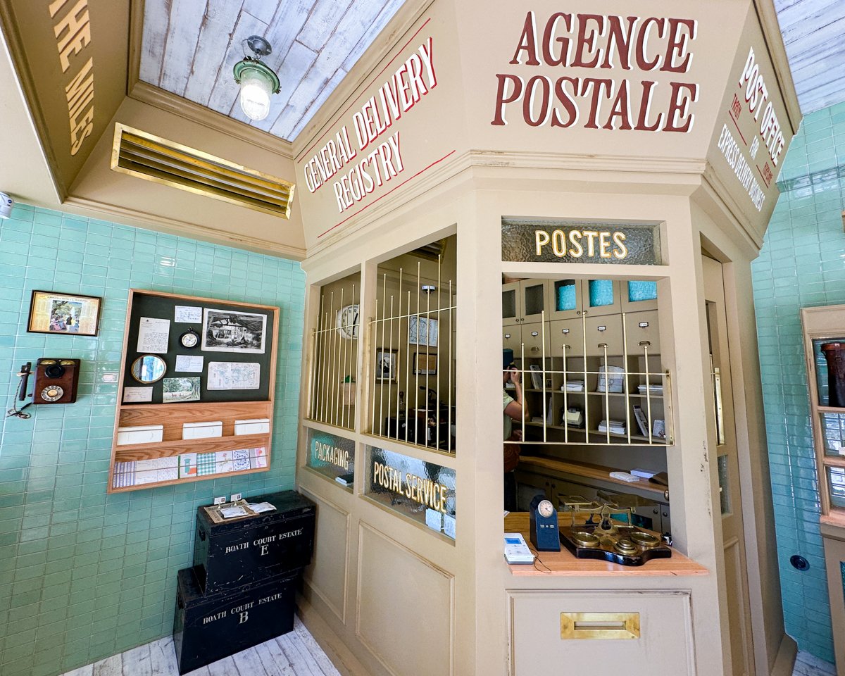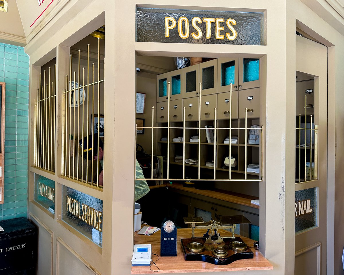 香りを試すムエットはポストカード型で、店内にはポストや郵便局のカウンターなど、レトロな雰囲気のデザインでした。