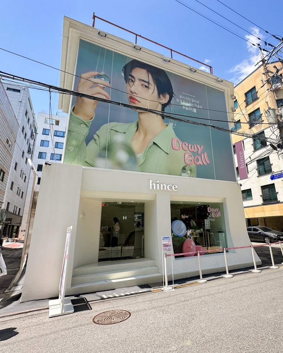 日本でもファンが多い「ヒンス(hince)」のフラッグシップストアは、ハンナムドンとソンスの店舗のみ。ソンス店「hince 聖水 ホワイトパーク」は、2024年秋にオープン。若さや自由、ロマンを兼ね備えたスケートカルチャーにインスパイアされた店舗は、ホワイトドレスを着てスケートボードを楽しむ女性をイメージしたのだそう。店舗デザインの所々にスケートパークのような曲線的な要素が散りばめられています。最新作が試せるほか、キーチャームなどの購入特典など、ここだけで楽しめる要素が満載。アンバサダーのENHYPENのSUNGHOONの大々的なヴィジュアルが目印です。