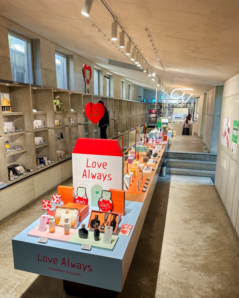 店舗にアートスペースが陳列されているのもユニークなポイント。シーズンごとに新しいインスタレーションに変わるため、何度でも訪れたくなる空間でした。