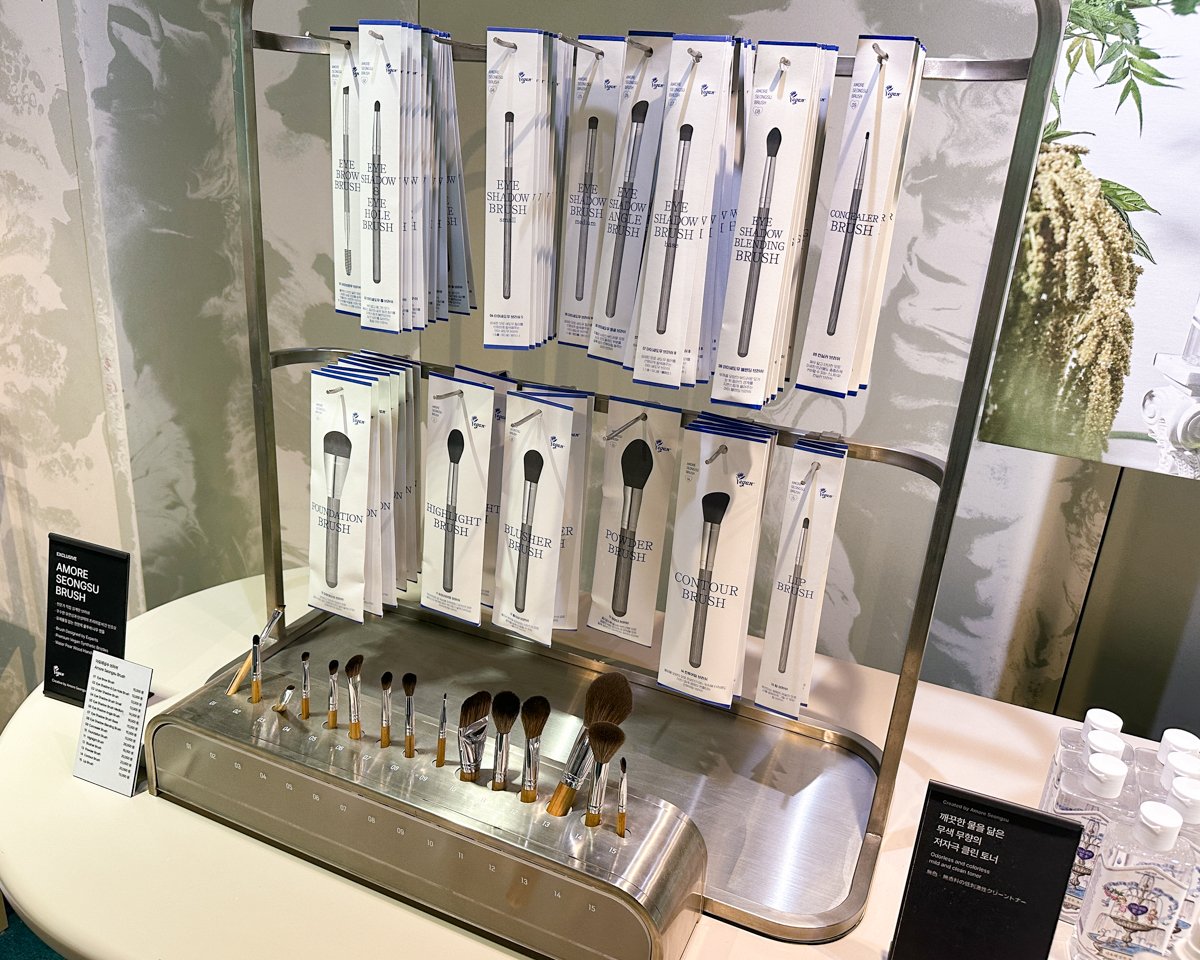 店内には商品が並ぶほか、クリーナーの体験コーナーがあるのがユニークでした。ブラシやパフなどを清潔に保つためのクリーナーだけでなく、乾かす際に便利なスタンドやラックなども揃っています。