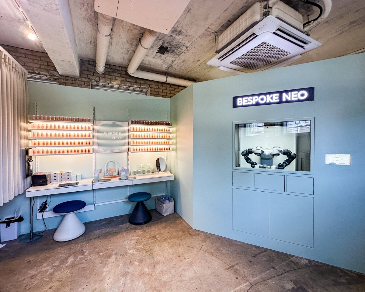 2階にはラネージュの「BESPOKE NEO」を展開。専属メイクアップアーティストによるマンツーマンのカウンセリングと、独自のスキントーン測定技術「Skintone Finder」で、150色のファンデーションの中からぴったりなカラーをチョイス。その場でオーダーすると、目の前でロボットがファンデーションを作ってくれます。