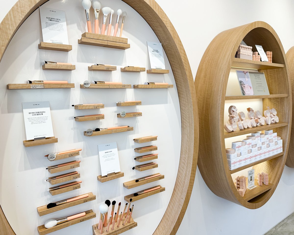どんなメイクツールを買ったらいいか迷っている人におすすめなのが、「メイクツールラボ(THE TOOL LAB)」のフラッグシップストア。長年、名だたるラグジュアリーブランドでメイクツールの開発に携わっていたメイクアップアーティスト ペク・スギョン氏が2015年に立ち上げたメイクツールの専門ブランドで、ブラシやパフ、ツールのクリーナーがずらり。ブラシはアイ、チーク、リップ、ベースメイクなどパーツごとにさまざまな形とサイズを展開しています。