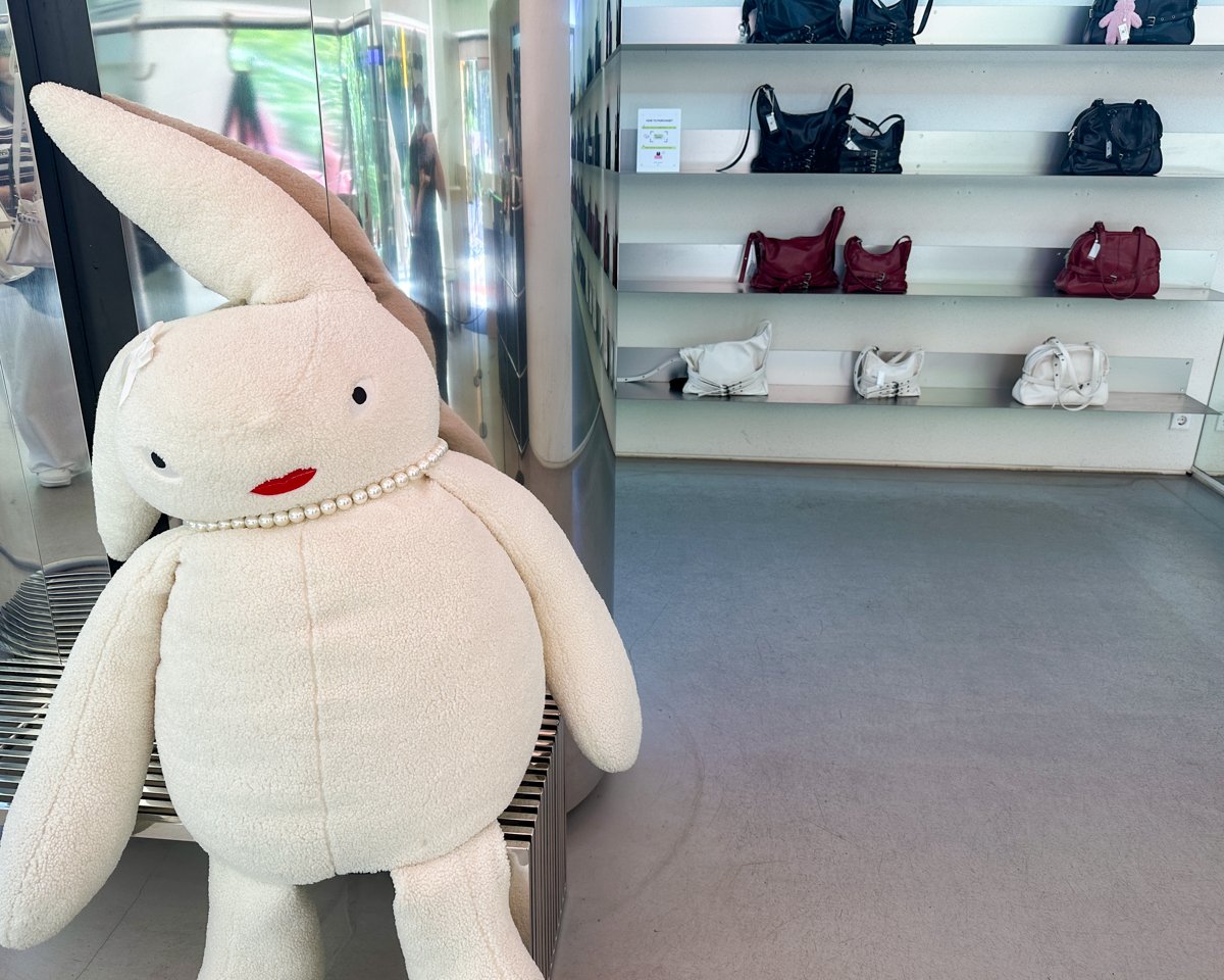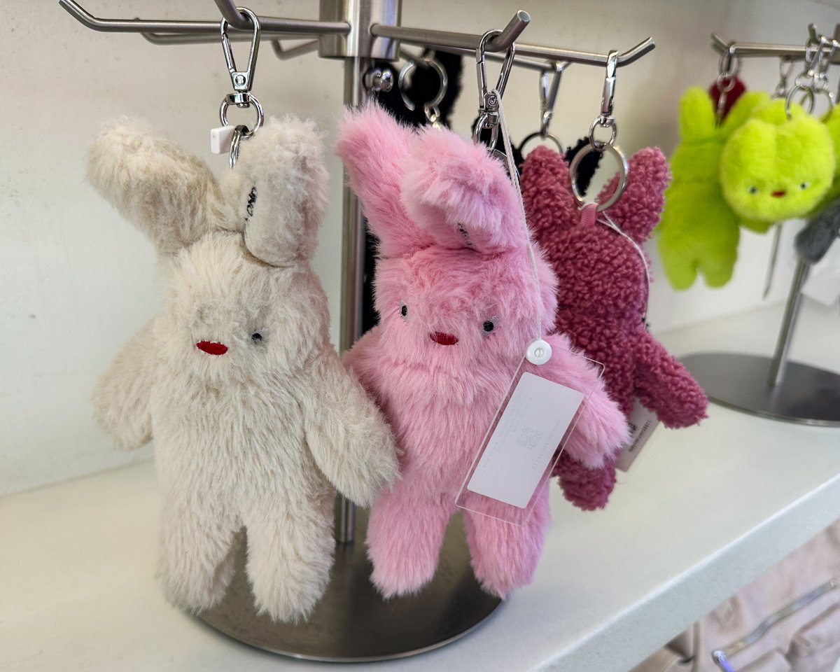 クセになる見た目のオリジナルキャラクターも有名で、店内に巨大なぬいぐるみがありました。バッグをデコレーションする人形や小物入れになるポーチ型のキーホルダーなども人気です。