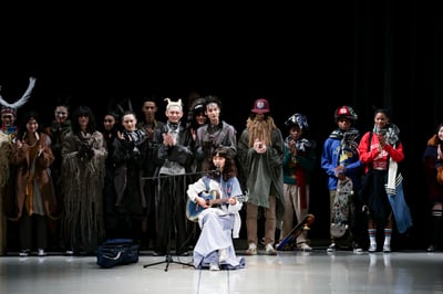 ロンドンのファッションショーを彷彿とさせるような演劇チックなショーは、今回も健在。"refrppie"というテーマのもと、幼少期に訪れたアメリカでの景色をきっかけに、モード史の都でもあるパリの伝統―フレンチスタイルーとヒッピーを掛け合わせ、未来の人間像を描くとコレクションノートに記してある。