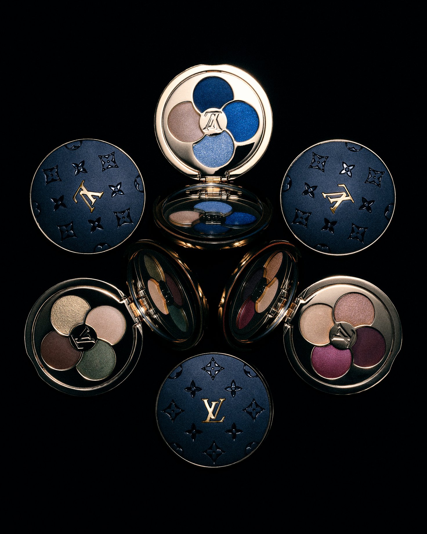 4色のハーモニーが配置されたアイシャドウパレット「LV オンブル」。パットが、ルイ・ヴィトンのフィルターを通して厳選した6つの異なるフィニッシュが、パレットごとに振り分けられている。(開いたパレット、上から時計回りに)LV オンブル 950、896、951 各3万6300円