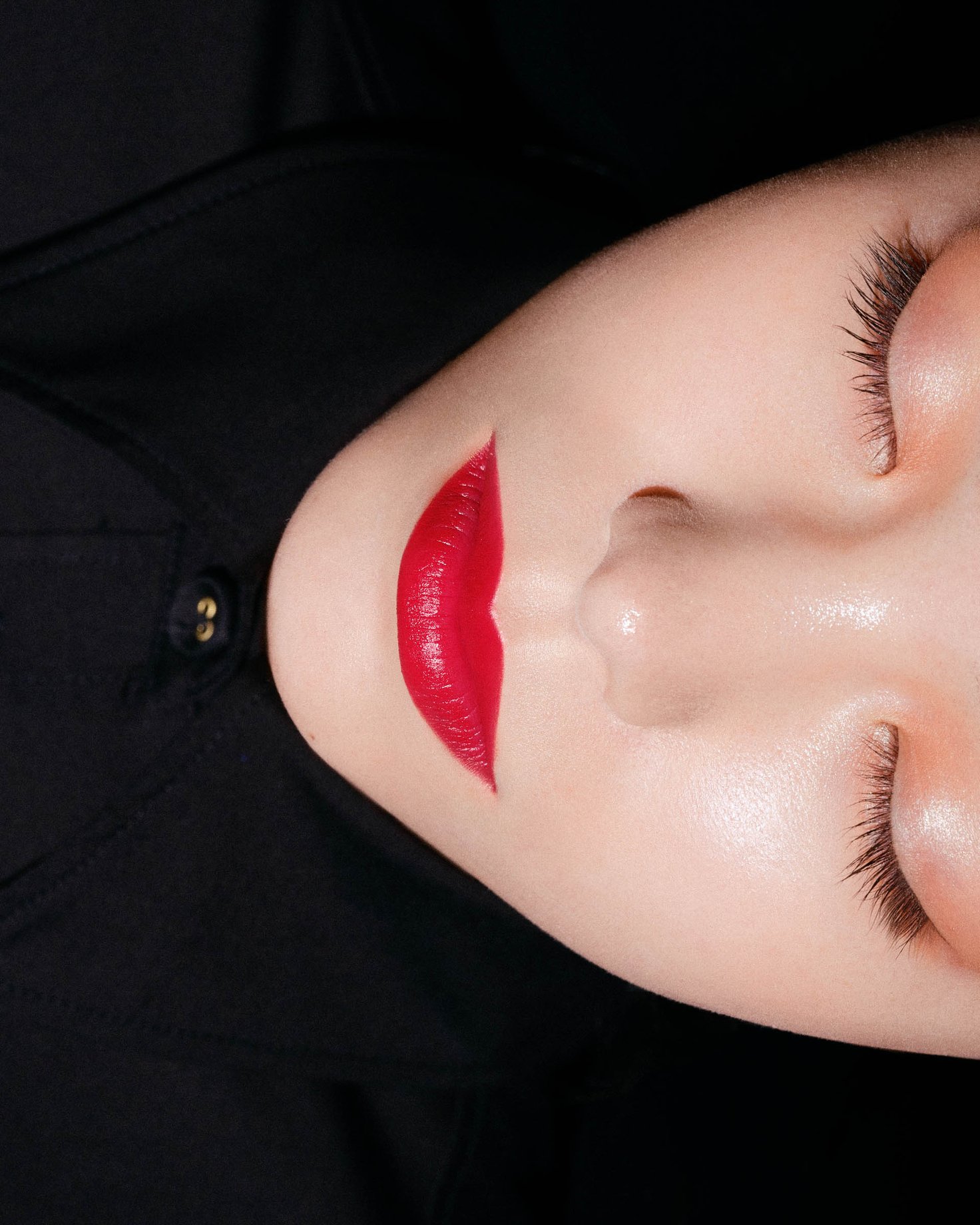 彫刻のように精密なリップラインを、ふっくらと柔らかな質感で捉えるマットリップが主役