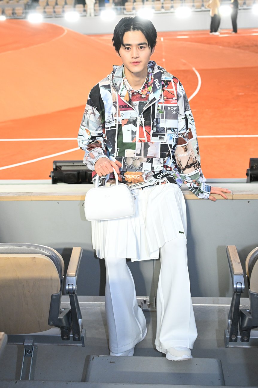 場所はパリ16区、ブローニュの森にあるテニス競技場「ローラン・ギャロス・スタジアム」。赤土のクレーコートで知られ、数々の名試合が繰り広げられてきた地だ。このテニス界の聖地を舞台に、「ラコステ(LACOSTE)」が新クリエイティブ・ディレクターのペラジア・コロトロス(Pelagia Kolotouros)によるデビューコレクションを発表。ラコステの新章のスタートを、日本から招かれた鈴鹿央士、石井杏奈、アオイヤマダ、新たにアンバサダーに就任したワン・イーボー(王一博)など、国際色豊かなゲストが観客席から見守った。