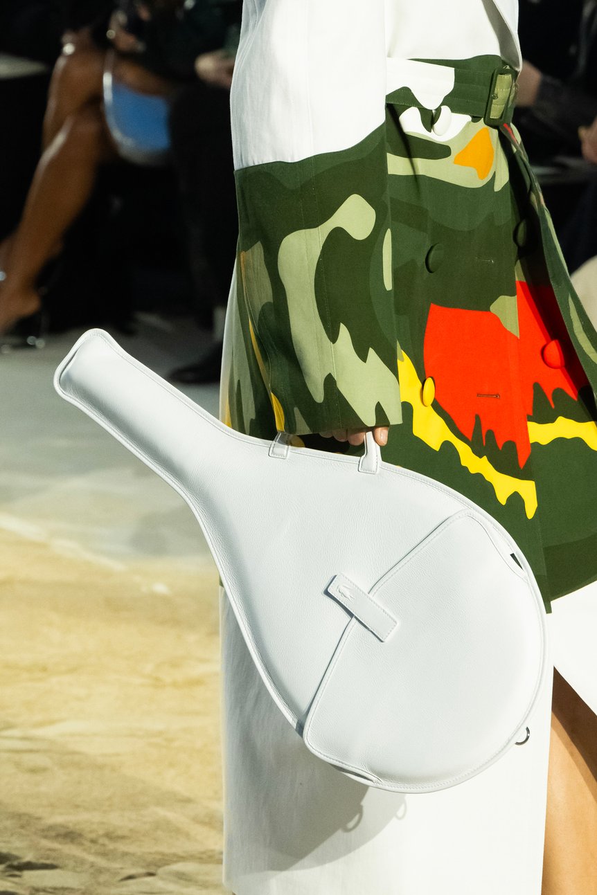 生活を彩る小物やアクセサリーも豊富に展開。週末用のラケットトートバッグや、テニスネットが付いたハンドバッグ、ワニの骨や歯、目といったモチーフを採用したジュエリーなどで遊びを効かせた。