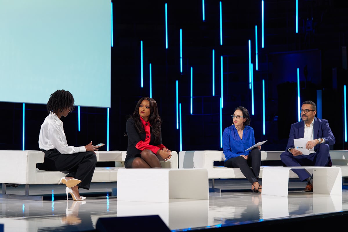 (左から)Lovelda Vincenzi(MC)、キキ・パーマー、Dr.Delphine Kerob(皮膚科医)、Dr.Andrew Alexis(皮膚科医)