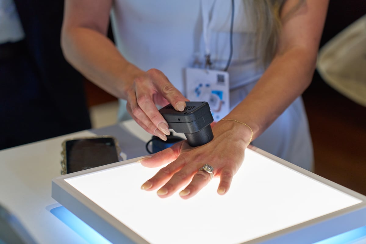 ワークショップではアメリカで導入しているAI肌測定のツール体験や、紫外線のダメージを受けた肌と受けていない肌の差異を視覚化できるブースなど、ブランドがこれまで行ってきた研究を体験しながら学べるプログラムを用意。AI肌測定はオンラインサイトから顔の正面・横顔の写真をアップロードすることで肌の状態をチェックし、商品のレコメンドを受けることができます。「オンラインサイトからアクセスできるのでユーザービリティが高く、スキンケアに迷ったり、自分の肌状態をすぐに知りたい時に便利ですよね。クリニックの本格的な機械で測定するのは年に1回あるかないかという人が多いと思いますが、このサービスでもっと短い期間で肌状態をトラッキングしていくことで、スキンケアのモチベーションが上がるんじゃないかなと思います」(小林先生)