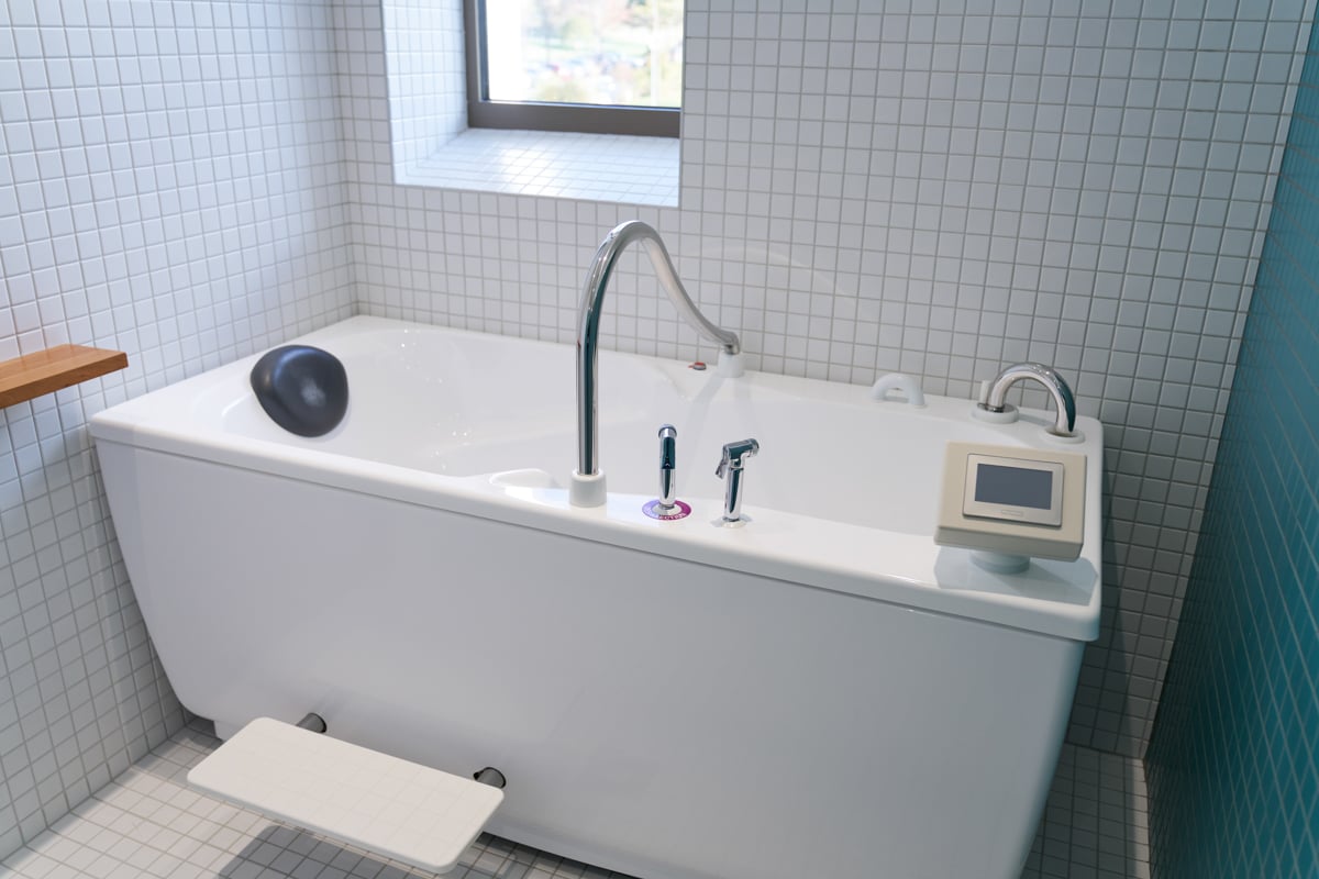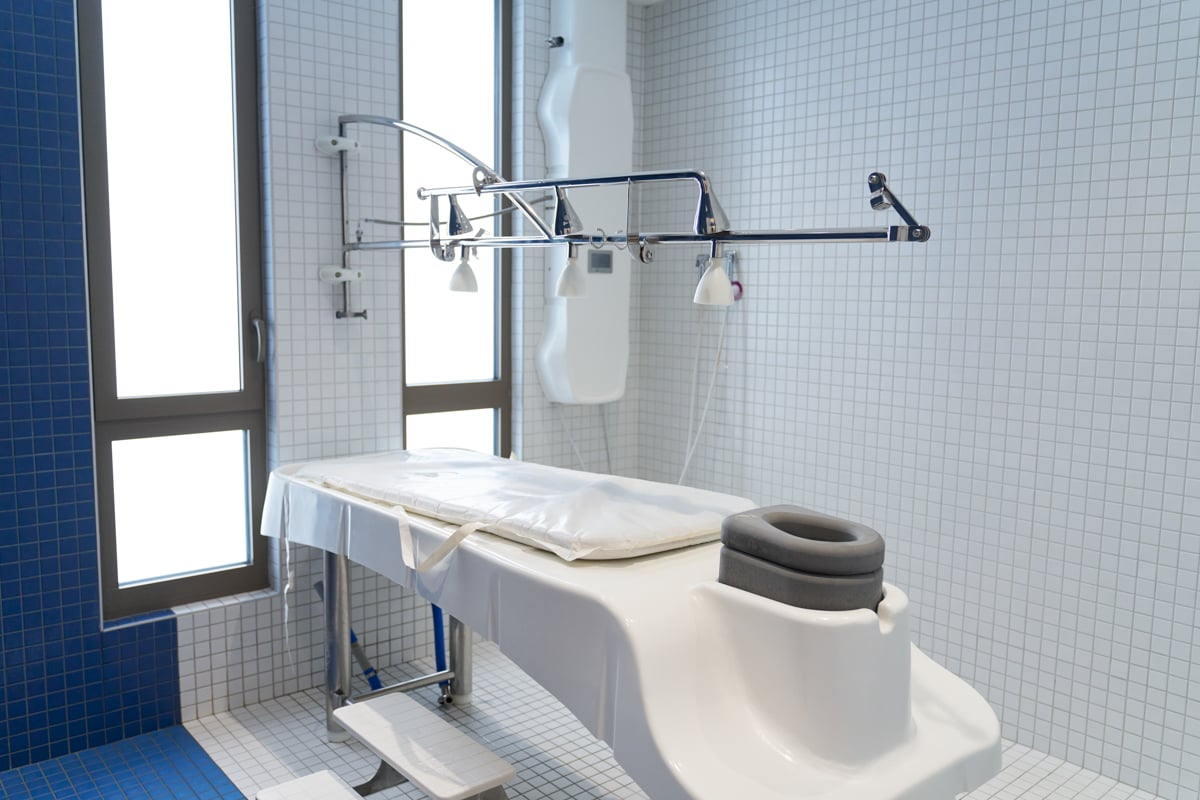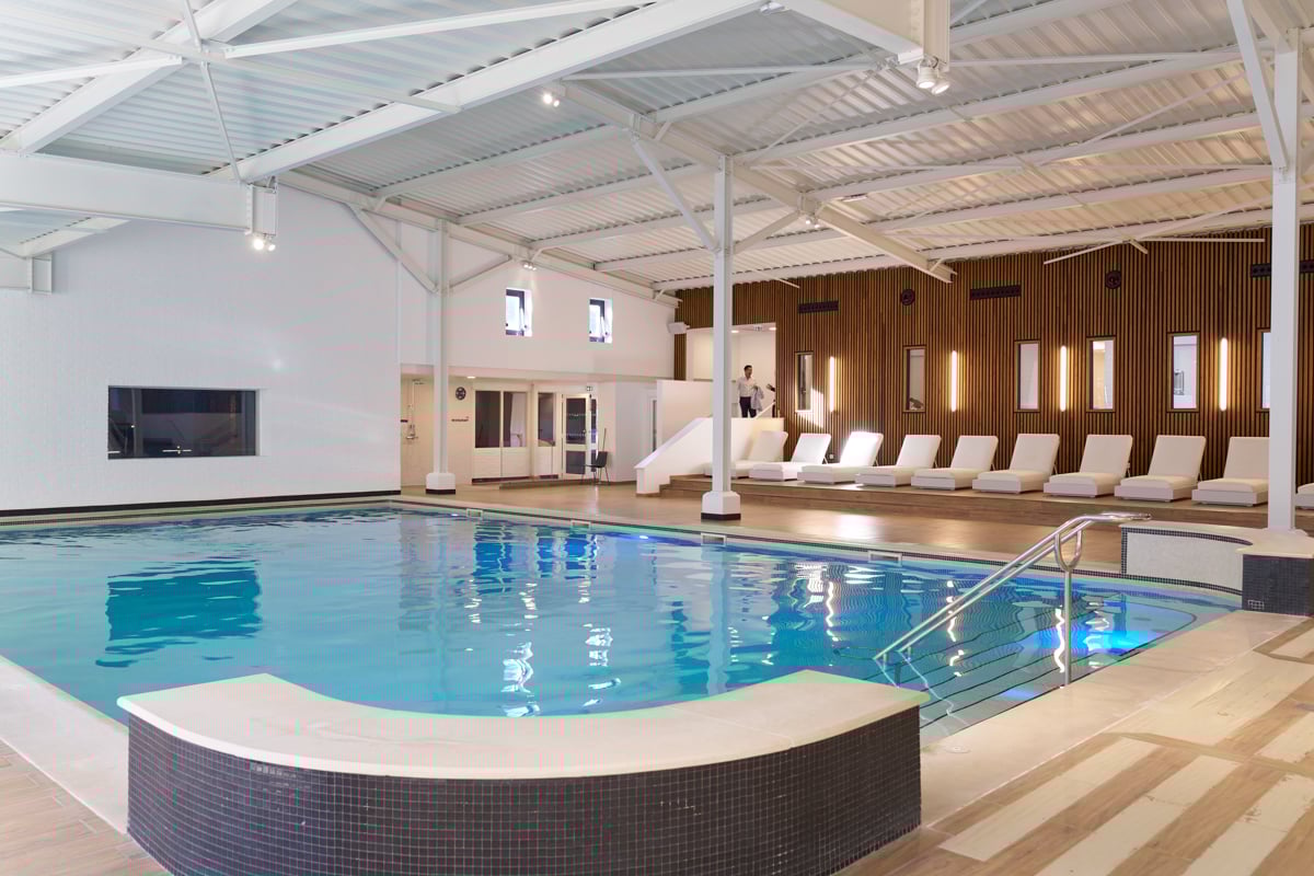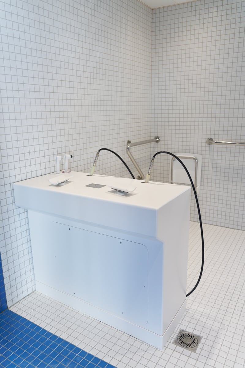 施設内にはターマルウォーターを用いて肌疾患を治療するトリートメントが用意されています。がん患者、湿疹やアトピーや火傷などの肌疾患に向け、皮膚のターンオーバー促進のためにミスト状でターマルウォーターを8分間浴びる機械や、ボディ向けの強い水圧のジェット状タイプ、皮膚の柔軟性にアプローチし、可動域を高める優しいシャワーでマッサージするように全身に浴びるメソッド、浴槽で浸かる方法など、肌の状態に最適な方法でターマルウォーターのトリートメントが受けられるようになっています。施設内にはターマルウォーターを使ったプールなどのスパ施設も併設。ここは処方箋が無くても入れます。プールの水ももちろんターマルウォーター!