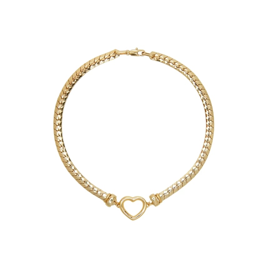 無骨なスネークチェーンに愛らしいオープンハートモチーフをバランスよく掛け合わせた、シンプルながら目をひくデザイン。