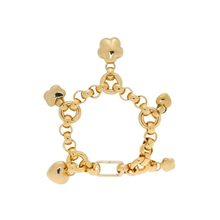 ハート、フラワー、蝶々とキュートなチャームがついたブレスレット。着こなしに個性を添えてくれるデザインです。