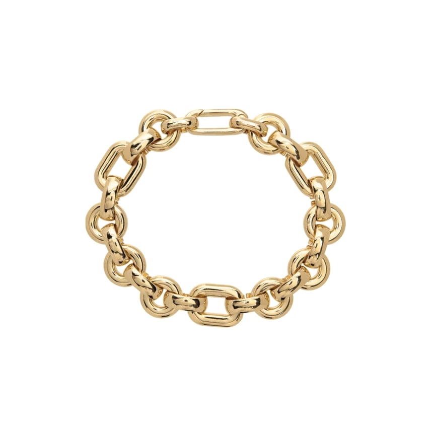 手元でパワフルな煌めきを放つ、ボリュームのあるチェーンで作られたブレスレットは、ひとつ取り入れるだけで存在感抜群。