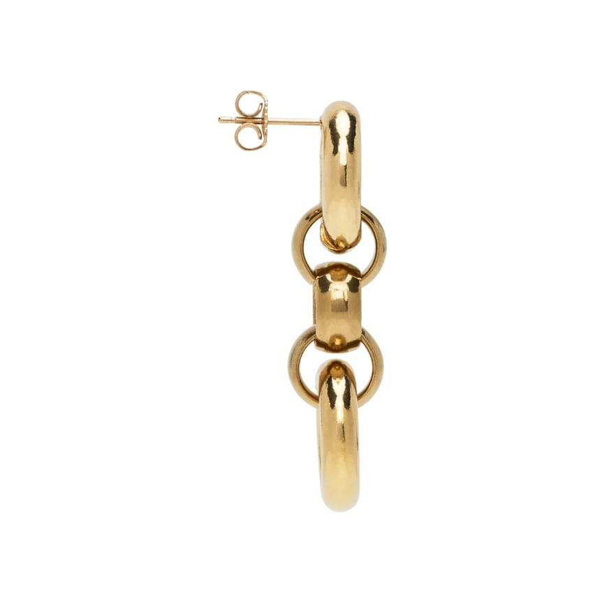 大きさ、太さの違うリングを繋げた、レトロムード漂うピアス。動くたびに揺れる、4.5cmx2cmの大振りなフォルムがポイントです。