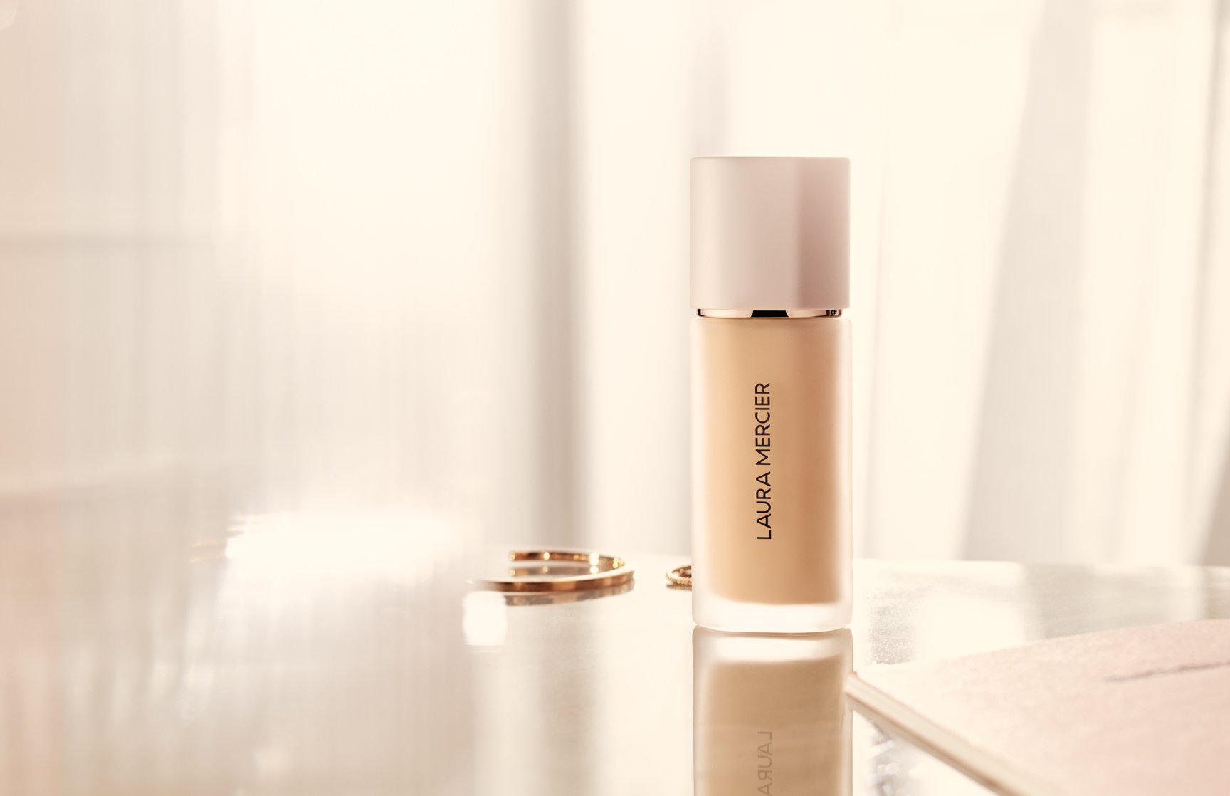 素肌感を追求するローラ メルシエの新ファンデーション。新たなパーフェクティングカラーテクノロジーが搭載されていて、肌の表面に超極薄のメッシュを形成し一体化。毛穴や小ジワなどの微細なデコボコをフラットに整え、なめらかな状態にしてくれます。またオートバランシングテクノロジーで、理想的な肌の水分バランスを保ち、みずみずしい素肌のようなヘルシーなツヤ感を叶えてくれ、水、汗、湿気などに耐え、素肌感が持続します。