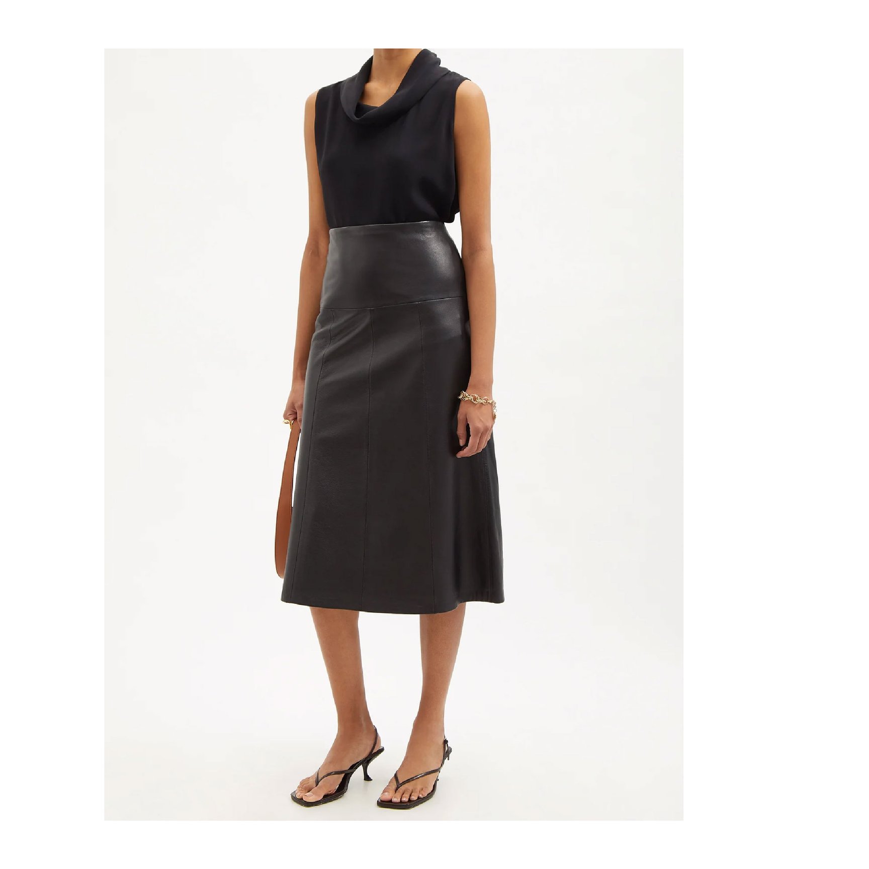 洗練されたシンプルな定番スタイルを追求するブランドコンセプトが体現されている「セフィン(Cefinn)」のレザー100%スカート。しなやかなレザーを使用した、精巧さが感じられる1着。なめらかなAラインを描くミディ丈なので、品のあるルックが叶います。