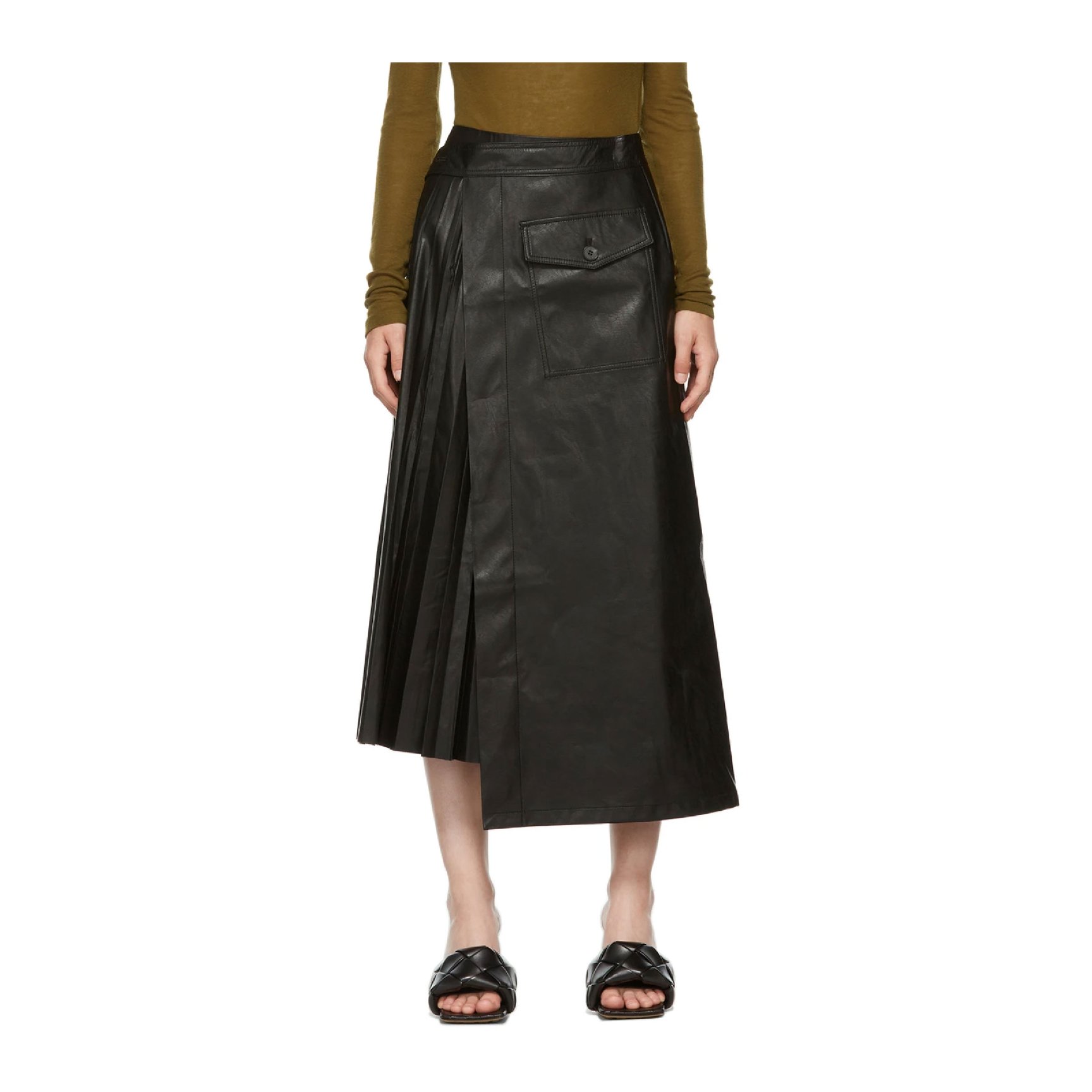 LVIR ブラック フェイク レザー プリーツ ラップ スカート ¥45500(関税・消費税込)