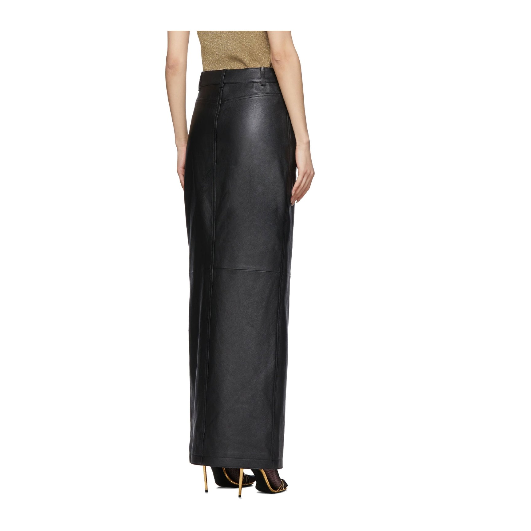 SAINT LAURENT ブラック レザー スナップ スリット スカート ¥380000(関税・消費税込)