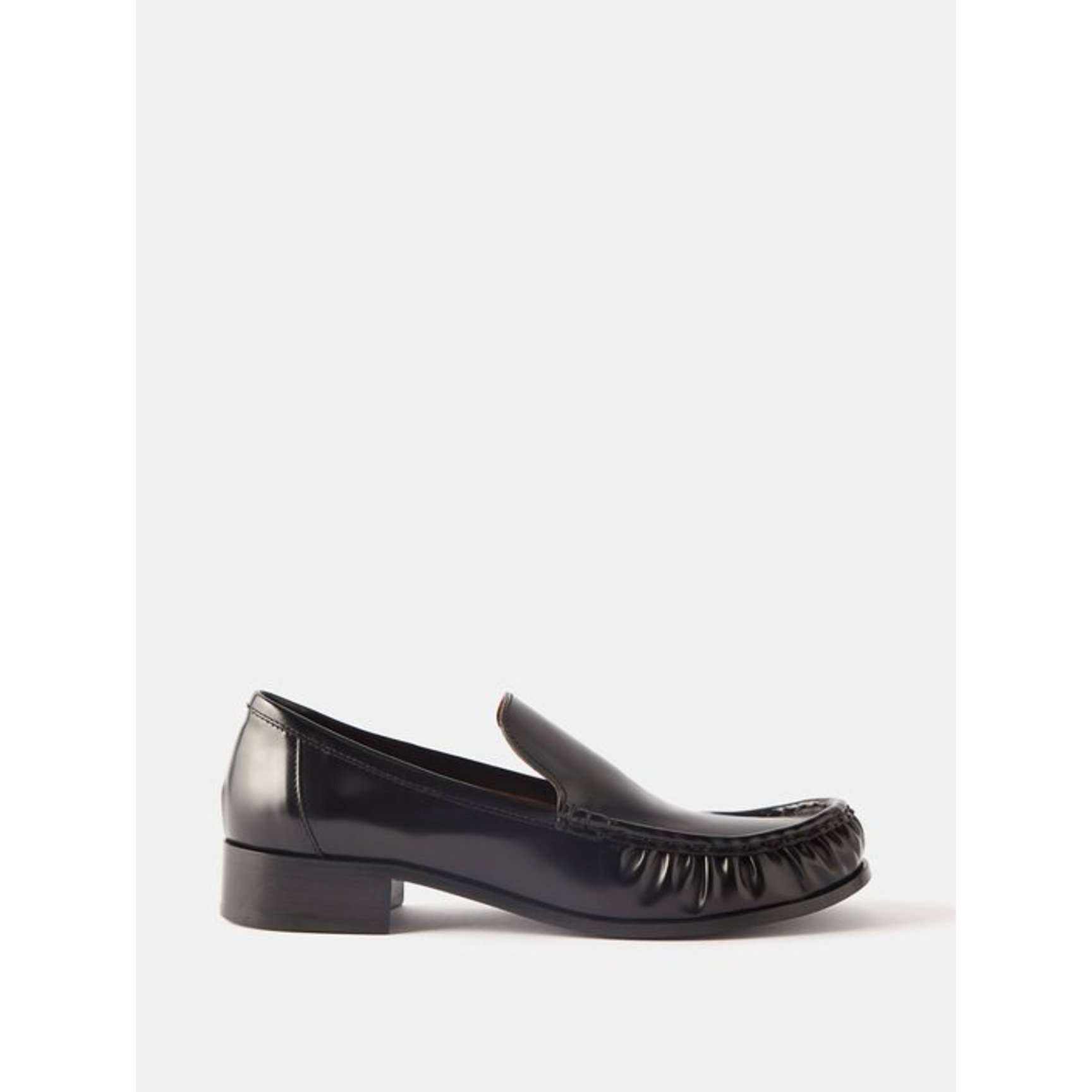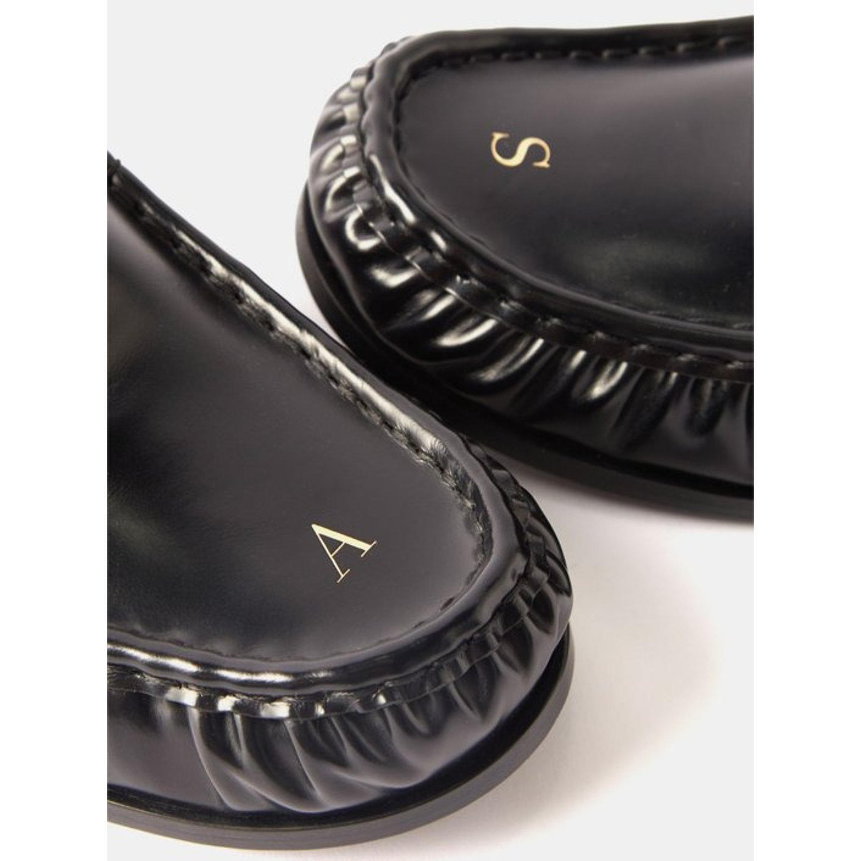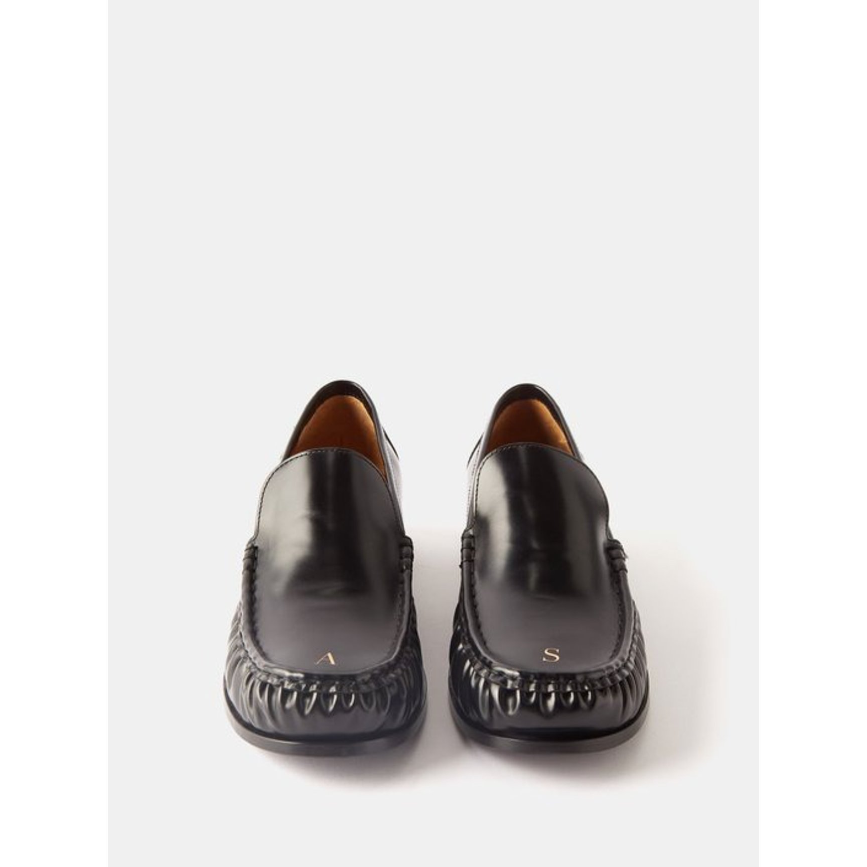 クシュっとしたシャーリングデザインが小粋な「アクネ・ストゥディオズ(Acne Studios)」の「バビ」ローファー。つま先部分にはブランド名の頭文字がゴールドのホットスタンプで施されており、遊び心漂うデザイン。