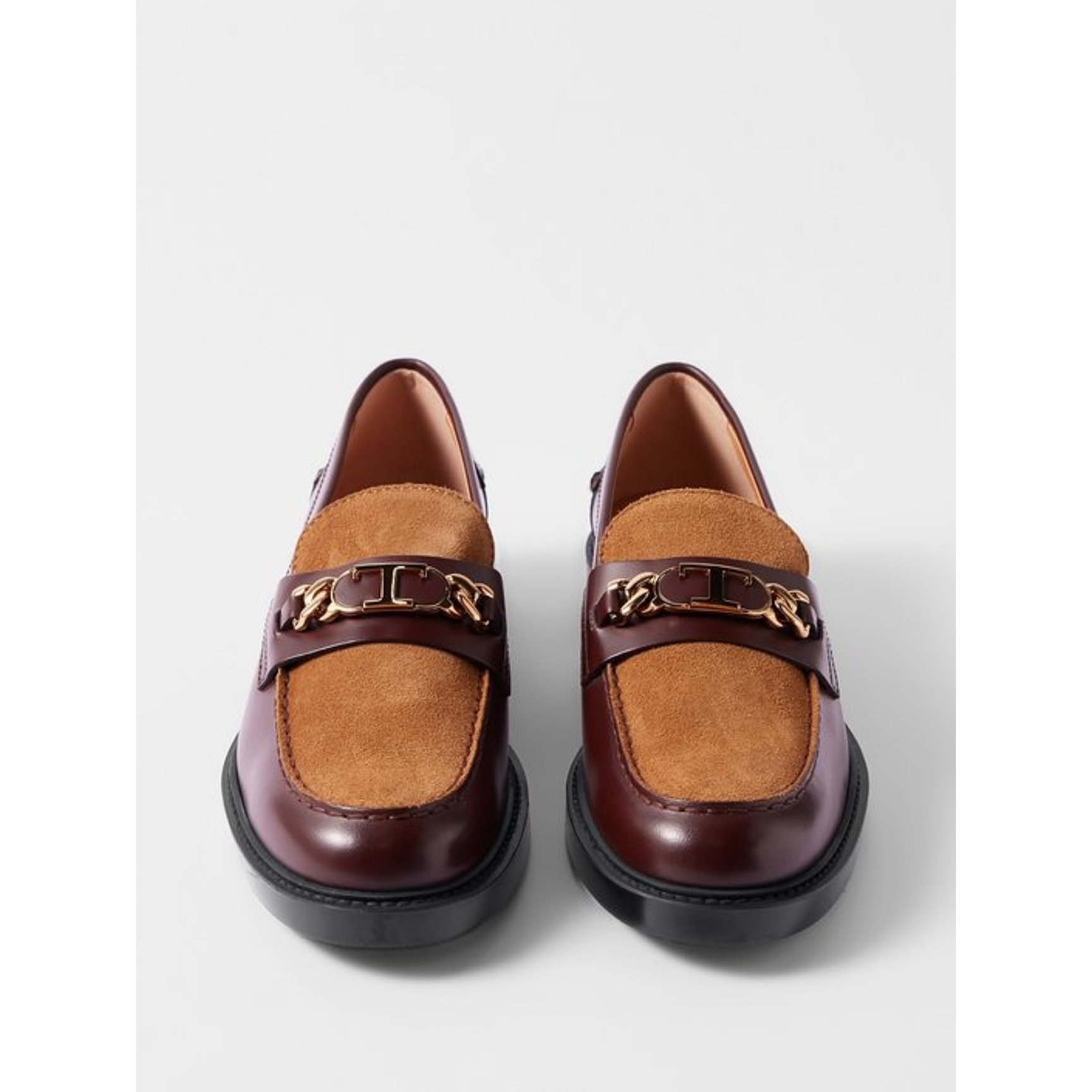 レザーとスウェードを組み合わせ、奥行きのある表情に仕上げた「トッズ(TOD’S)」のローファー。ブランドロゴ入りのホースビットが華やか。こっくり深みのあるブラウンの配色が季節感のある装いを叶えてくれます。