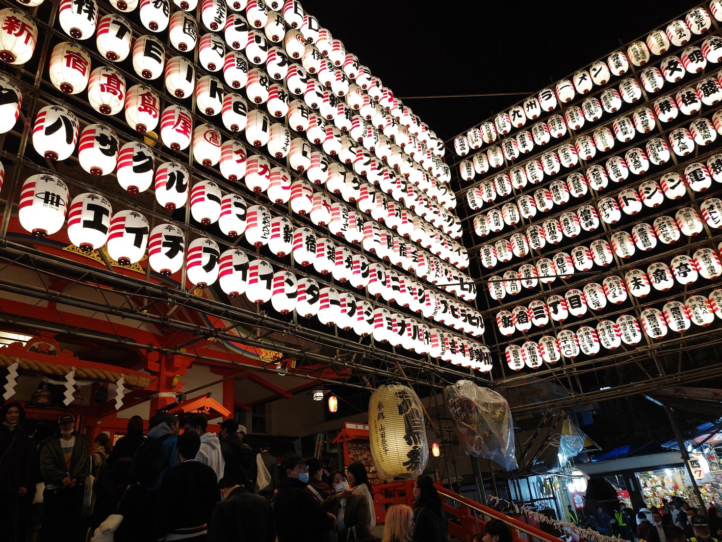 新宿、花園神社の酉の市。ゴールデン街の脇にある花園神社のお祭り。今年になって、ようやく酉の市が戻ってきたように思える。でも、屋台だけで、飲み食いできるお店がまだ無いし、11時でお終いということで、少し寂しい。前は、お店の営業終わりに朝まで飲むのが楽しかったんだけど。みんな大きい熊手を買うけれど、個人的には、神社の売店で売っている1000円の小さな熊手で済ませるのが粋、と信じている。歌舞伎町にあるセレクトショップ「THE FOUR-EYED」の藤田くんもいた。
