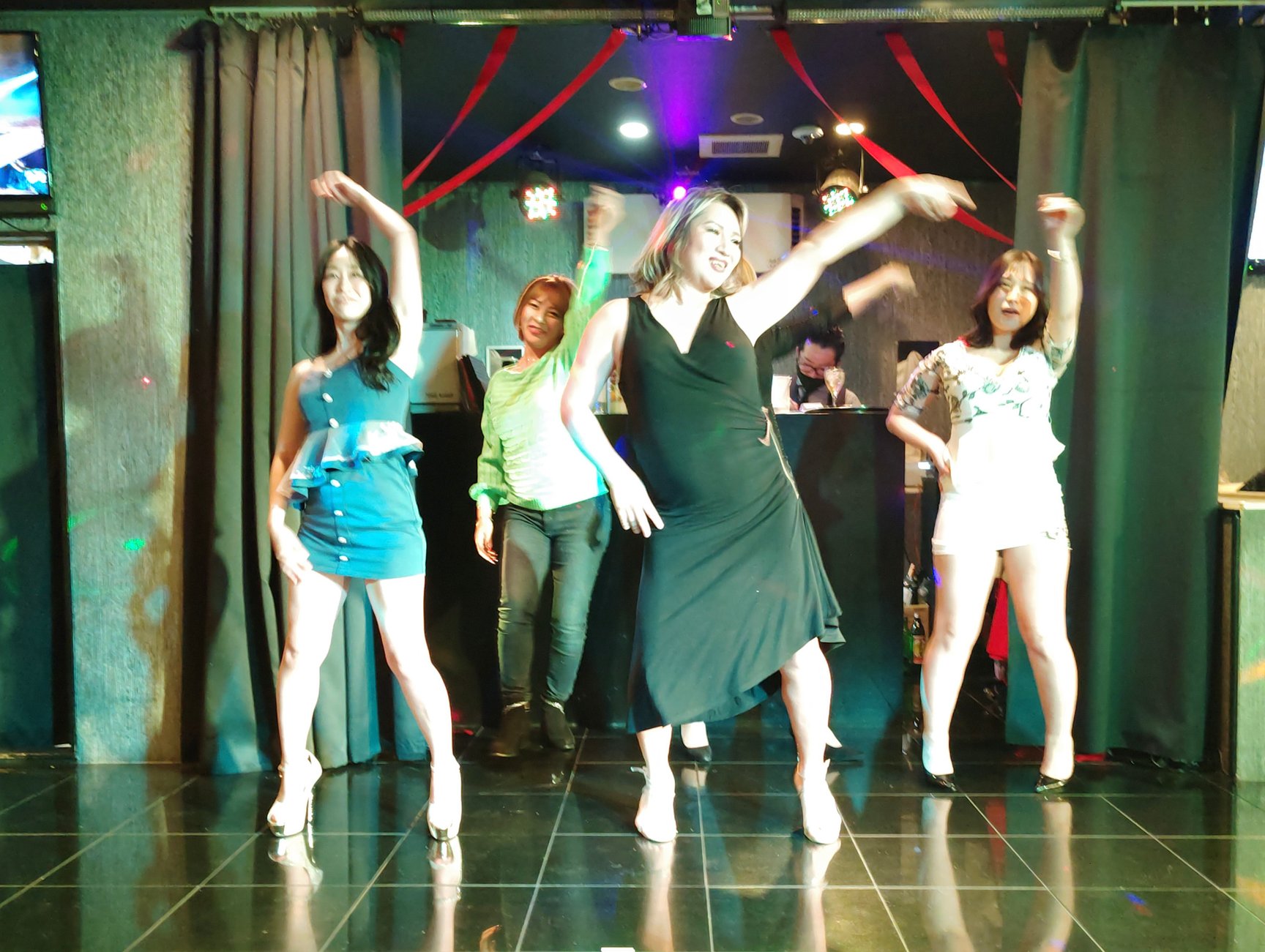 女性か男性か分からない中で、お互いに男と女を演じている空間(僕たちもあくまで男を演じているだけかもしれない!)。ニューハーフのキャストに混じって生物学的女性(本物の女性とか言うと語弊を産む)もいる。