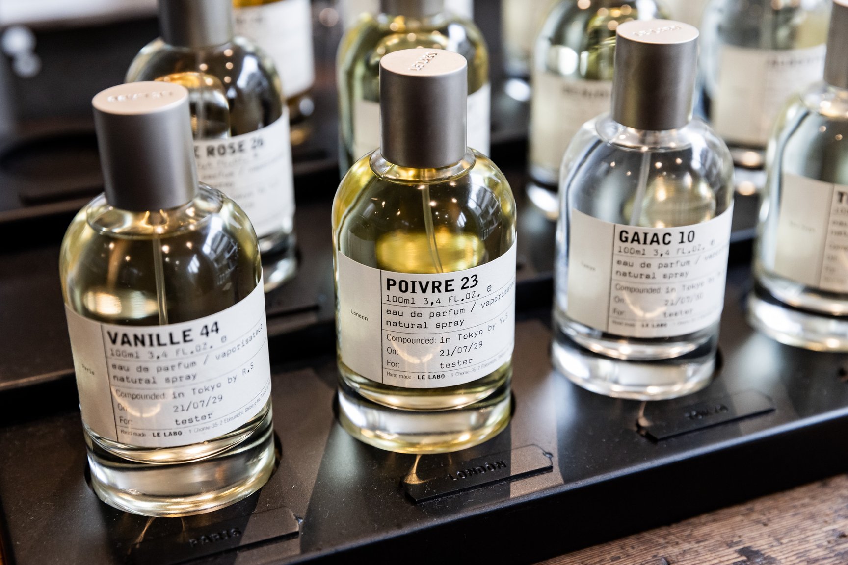 香水ファンから熱い支持を集める本コレクションには、東京限定の香りも存在します。「ガイアック 10(GAIAC 10)」と名付けられたそれは、ガイアックウッドを中心にムスクを漂わせ、ほのかなシダーとオリバナムを加えたシンプルな香り。繊細でありながら、深みや安定感を感じさせるフレグランスで、「シティ エクスクルーシブ」コレクションの中でも高い人気を誇る一本です。