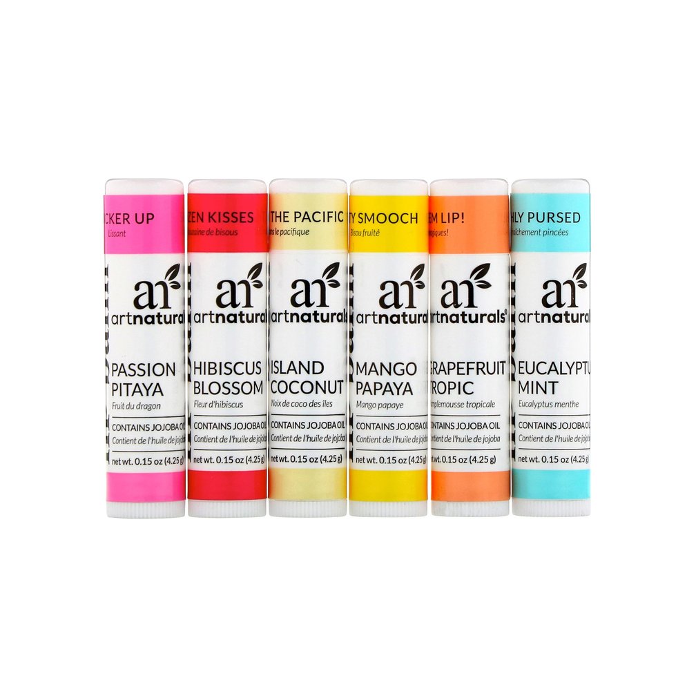 ホホバオイルやココナッツオイルによってしっとりとうるおう「アートナチュラルズ(Artnaturals)」のリップクリームの6本セット。毎日使うものだから、シンプルなパッケージデザインもGOOD。フレーバーは、「パッション・ピタヤ」「マンゴー・パパイヤ」「ハイビスカス・ブロッサム」「グレープフルーツ・トロピック」「アイランド・ココナッツ」「ユーカリ・ミント」の選ぶのも楽しい6種類です。