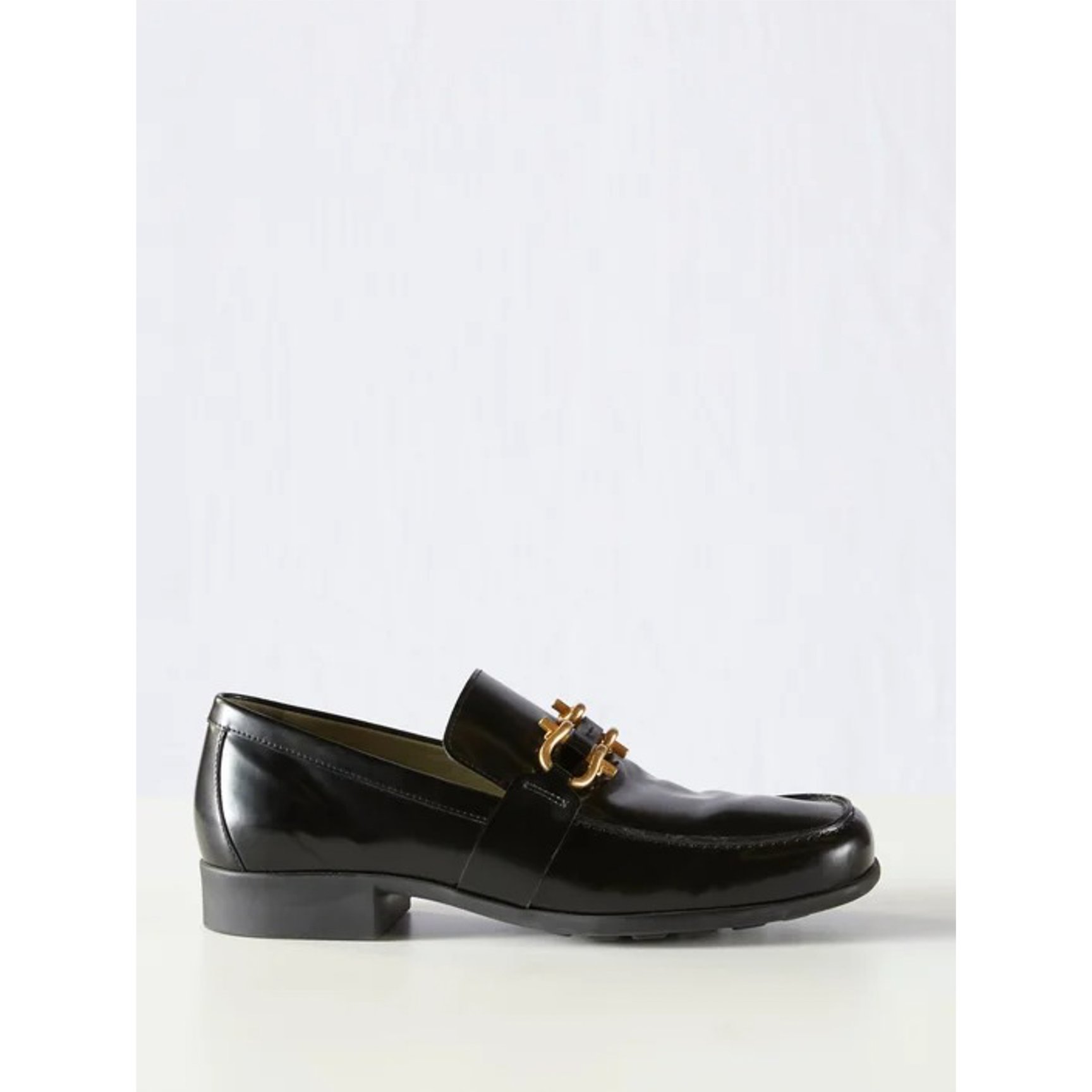ゴールドに輝くメドゥーサのコインが差し込まれた、「ヴェルサーチェ(VERSACE)」のローファー。オフィスはもちろん、カジュアルにもパーティースタイルにも似合うセンシュアルな一足は、きっとコーディネートの要になるはず。