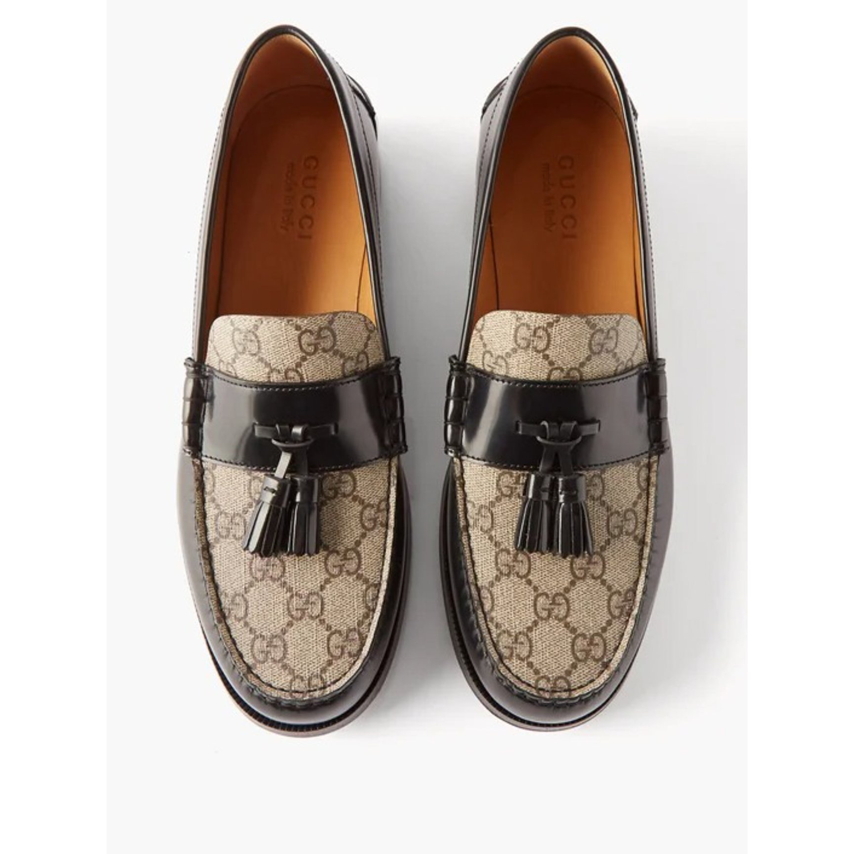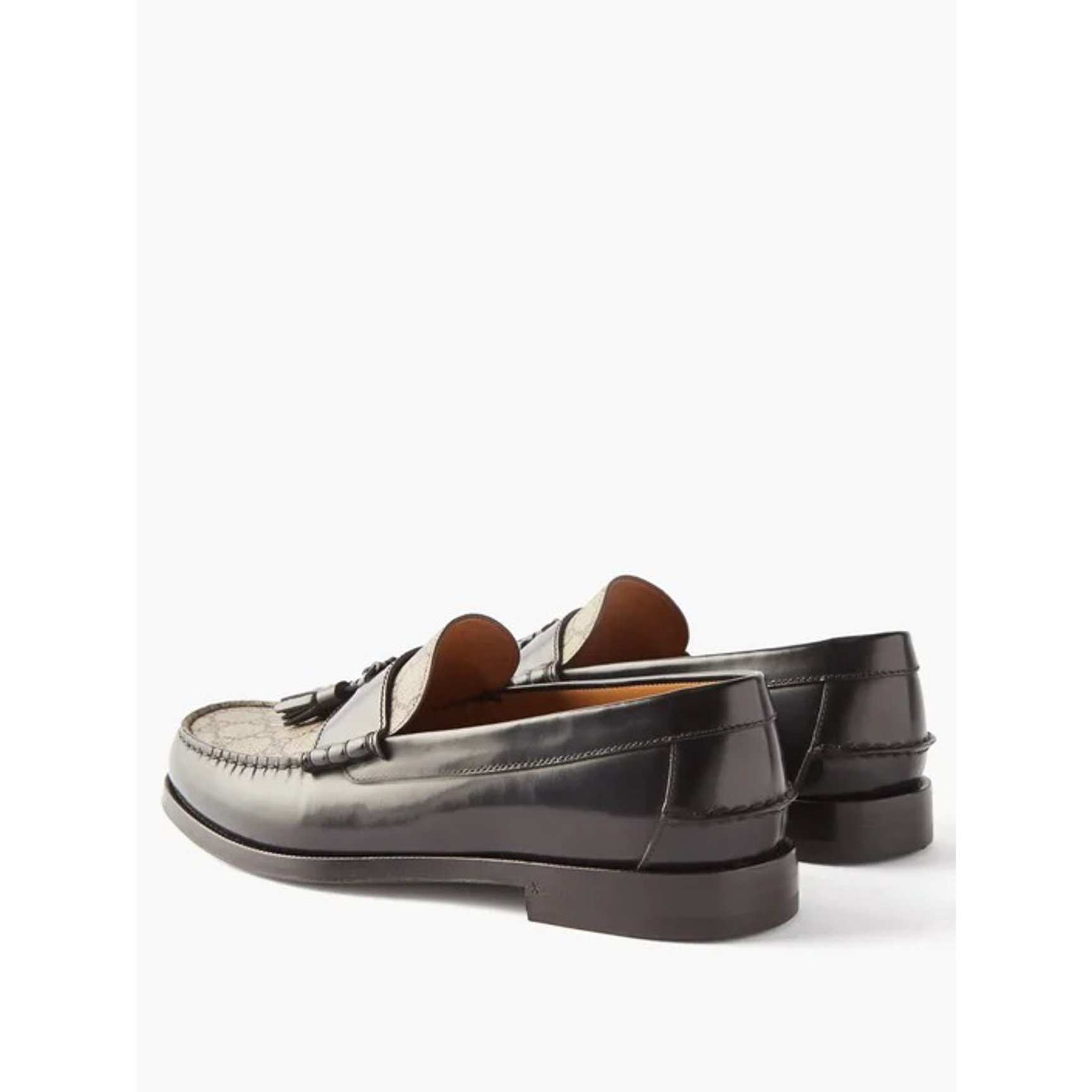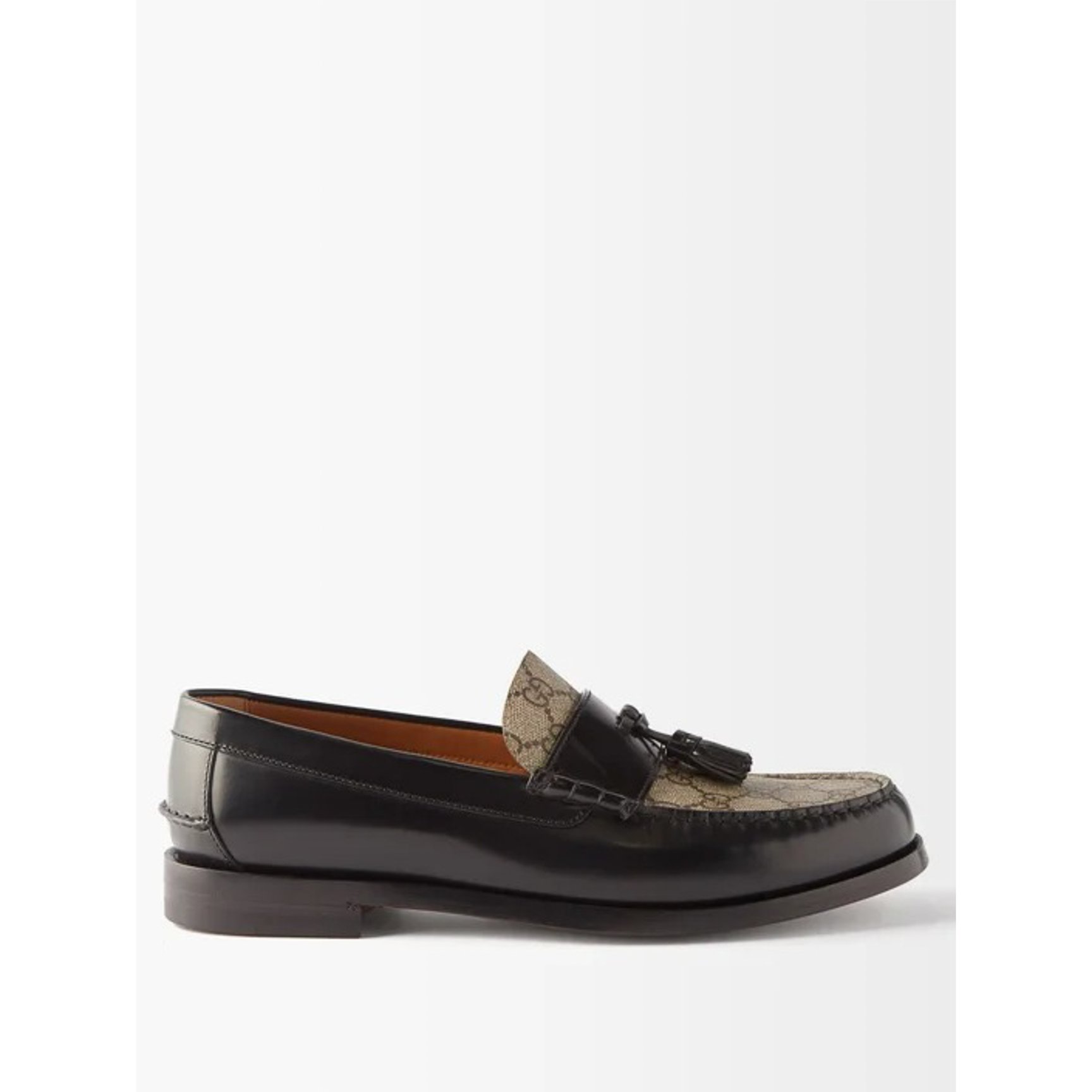 最後にご紹介するのは、GGスプリームキャンバスのモノグラムをパネルに取り入れた「グッチ(GUCCI)」のタッセルローファー。ヴィンテージオーラ漂う一足は、トータルルックを一層華やかな印象に昇華し、ドラマティックに仕上げます。