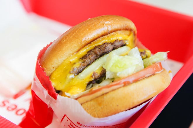 一気に駆け抜けたあと、昼食をとるため西海岸で大人気のバーガーショップIN-N-OUT(インアンドアウト)へ。